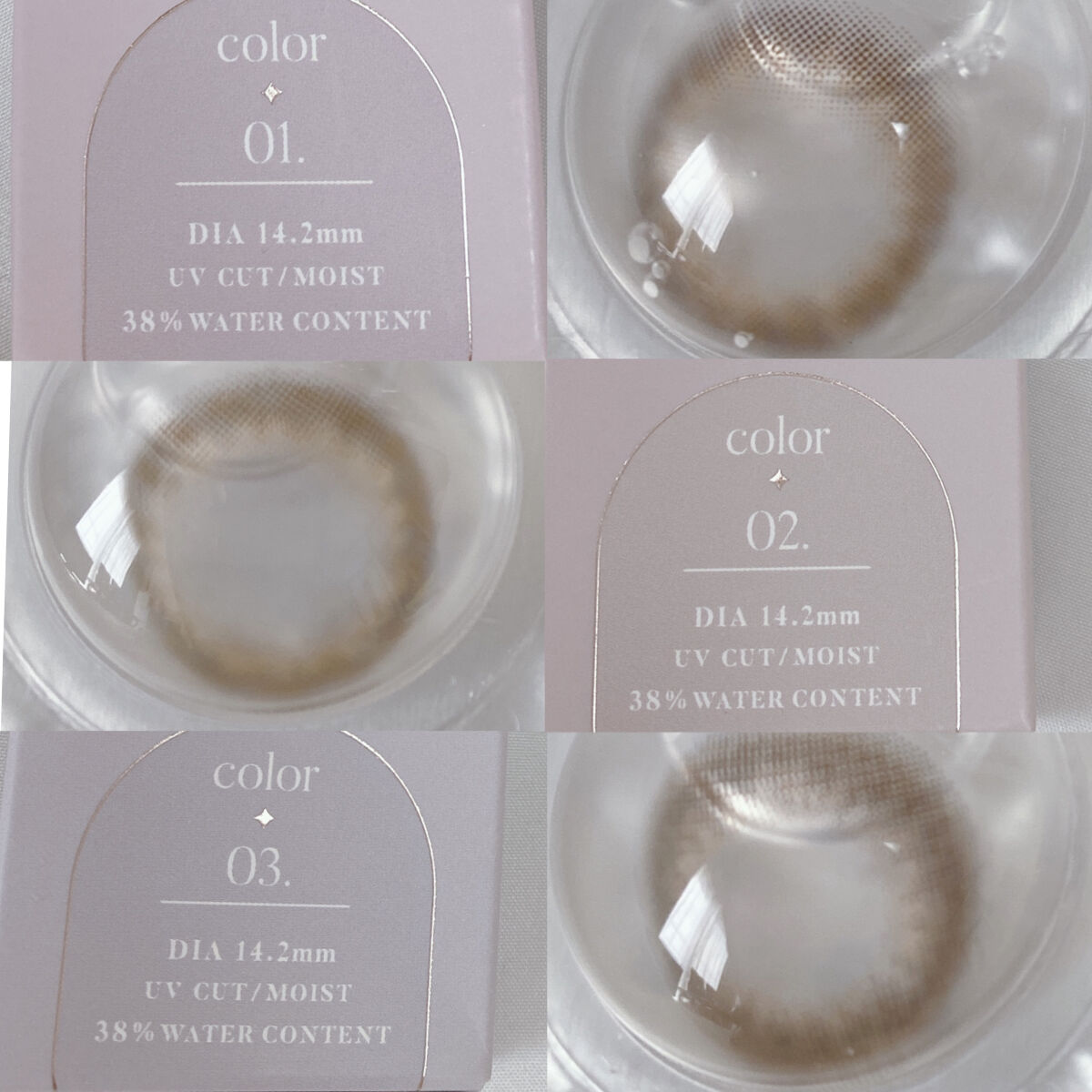 - ※2025年6月以降、商品パッケージ裏面・側面の一部表記を順次変更いたします。尚、これにかかる商品の交換・返品は承っておりません。 ■UVカット 紫外線を99%カットします。 ※UV-A波75%、UV-B波99%カット ■低含水 長時間の装用を考えた、レンズ自体に必要な水分が少ない低含水レンズです。※使用時間には個人差がありますので必ず眼科医の指導に従って下さい。 ■レンズ構造 着色剤がポリマー層によりレンズ内に包埋しています。 ■ 非イオン性レンズ 汚れが付きにくく視界をクリアに保ち、快適さが持続します。※装用感には個人差があります。 ■レンズ形状レンズ形状 フチに丸みをつけより快適な着け心地を目指しました。 Moon Melt Brown(ムーンメルトブラウン) とろける甘さのブラウンカラーに月の光を散りばめた、きらめき水光レンズ。 Cat Pearl(キャットパール) くっきり細フチでまんまるな印象の瞳♡きゅるんと子猫っぽグレーレンズ。 Jelly Quartz(ゼリークォーツ) ぼかし細フチでぷるんと輝くような瞳に、毎日使いたくなる引き算大人盛れレンズ。 カラーコンタクトレンズの不適正使用による眼障害の危険性等などがあります。 ●コンタクトレンズは高度管理医療機器です。不十分な洗浄・消毒など不適切なケアや、長時間・交換期間を超えた装用により、アレルギー性結膜炎、角膜感染症、角膜潰瘍等の重篤な眼障害が発生する危険性があります ●ご使用前に取扱説明書を確認してください 使用上の留意事項 ●眼科医院等を受診してからお求めください ●眼に異常を感じたら直ちにレンズ使用を中止し、お近くの眼科等で診察を受けてください ●医師の指示にしたがってご使用ください ●コンタクトレンズを装用する場合、自覚症状がなくても、眼科医院等での定期検査を受けてください ●レンズに不具合がある場合は使用しないでください