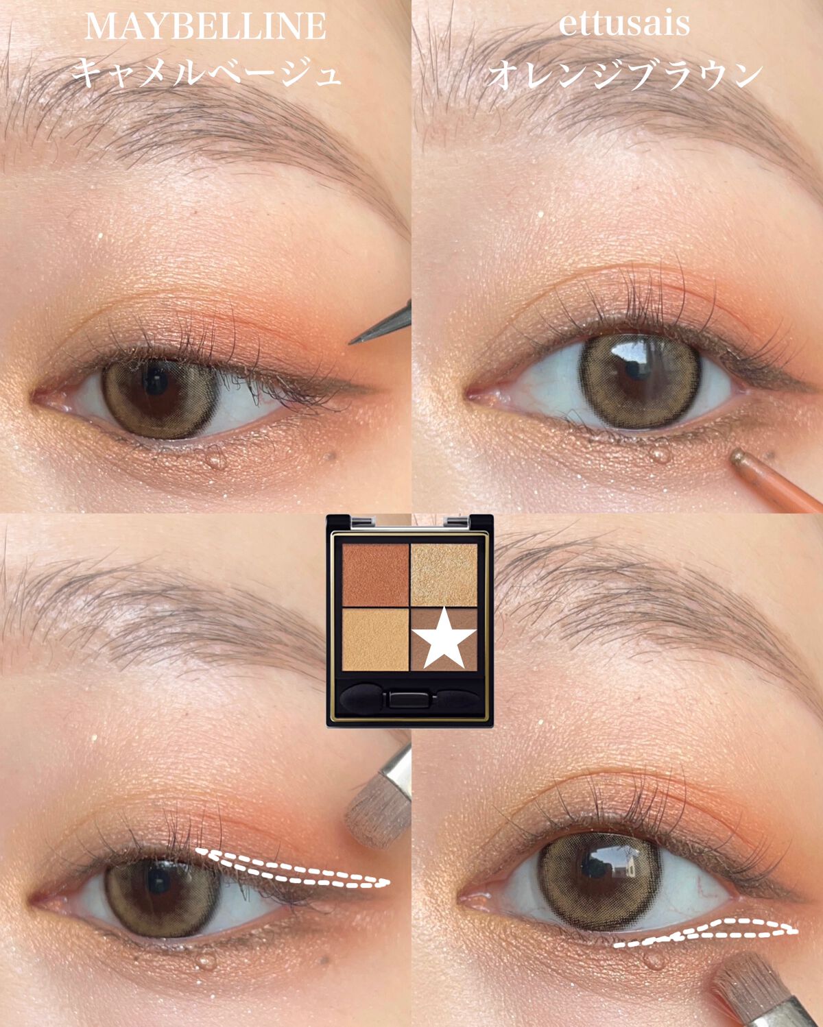 CANMAKEのパーフェクトスタイリストアイズ19アーバンコッパーを使用したアイメイク🤎組み合わせ次第で印象を変えれるこのアイシャドウ☝️今回は5色一気に使ってみました🌈発色がとてもよく、色の組み合わせもグラデーションしやすくて使いやすい😳真...