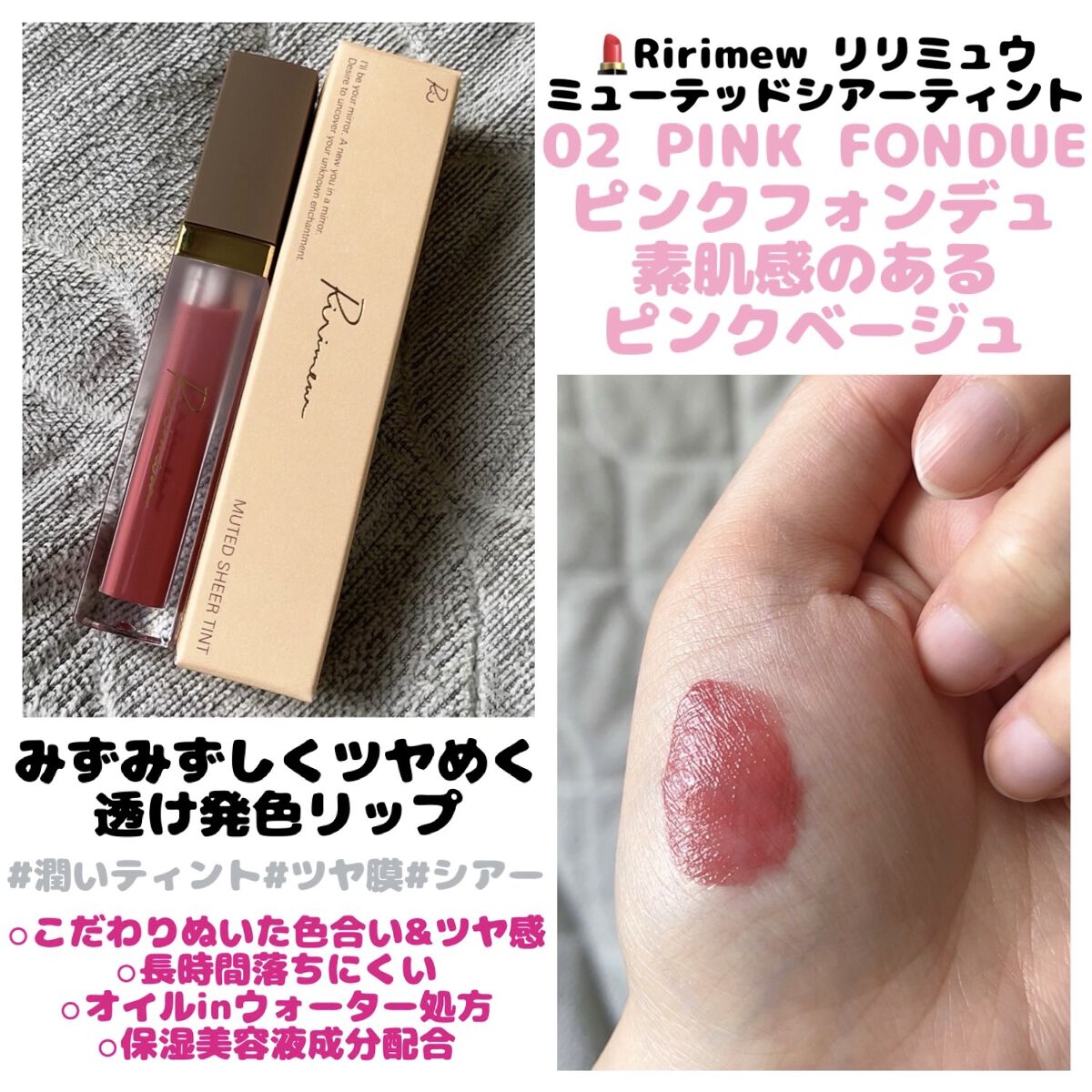 おはようございます。今日はRirimewミューテッドシアーティントのご紹介です。✼••┈┈••✼••┈┈••✼••┈┈••✼••┈┈••✼ミューテッドシアーティントみずみずしくツヤめく透け発色リップ#潤いティント#ツヤ膜#シアー⚪︎POINT...