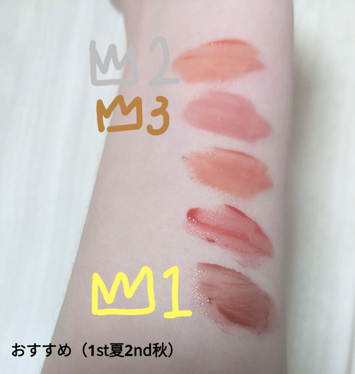 パッケージかわいいからすごい女子力上がった気になれるし、 色味が良い!何にでも合うリップです💞 すごい艶が出るからぽわっとした唇になれます! 1つ欠点なのは結構色落ちするところですでも値段を考えたらしょうがないと思います!🤔 すごい色悩んでBE1にしたのですがPK2もおすすめです! この2つが特にレビュー良かったと思います💫