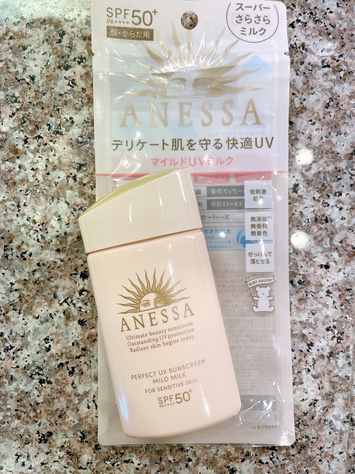 \お気に入りコスメ紹介/▷アネッサパーフェクトUVマイルドミルクNA赤ちゃんから使える!優しいのに最強UVミルク☀️肌負担を感じないほど軽いのに敏感肌をしっかり守ってくれるさらさらマイルドUVミルク!スムースプロテクトテクノロジーエアー搭載に...
