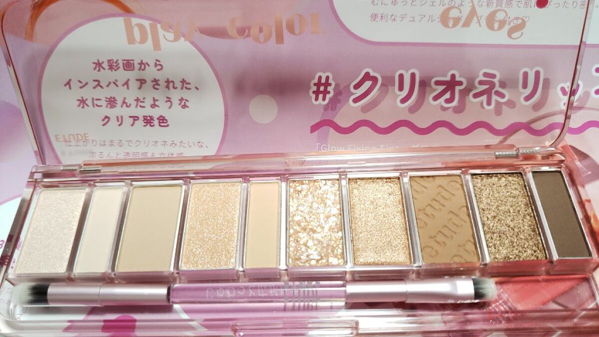 - 肌なじみの良い、鮮やかな発色で目元を華やかに彩る捨て色なしの10色アイシャドウパレット 異なる3種のテクスチャーを自由に組み合わせて、グラデーションも思いのままに。 NEW 2023.4 ・肌トーンにあう配色を詰め込んだトレンドカラー 肌トーンに合わせて、自分に似合うトレンドカラーが楽しめる♡ パーソナルカラー×トレンドカラーの掛け合わせパレットで、デイリーメイクもスペシャルメイクも気分にあわせてなりたい自分に! ・むにゅっとジェル質感ラメで高密着、煌めく目元 パレットの中でもポイントとなる大きめ粒子のラメは、ジェルのような新質感で落ちにくく肌にぴったりと密着します。キラキラとした目元をキープします。 ・使うカラーは大きめに!リアル捨て色なしパレット ベースやラメのよく使うカラーと締め色や濃い色等の減りが少ないカラーを異なるサイズで詰め込んだ、リアル捨て色なしパレット! <使用方法> 付属のデュアルシャドウブラシでベースカラーをまぶた全体に塗り広げます。細いブラシでグラデーションや目尻、アイライン、涙袋などのポイントカラーをのせて仕上げます。