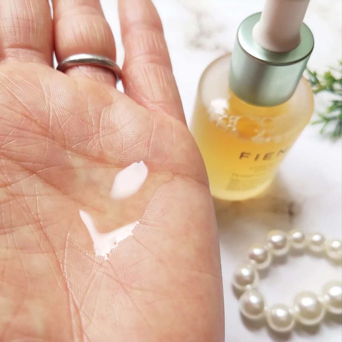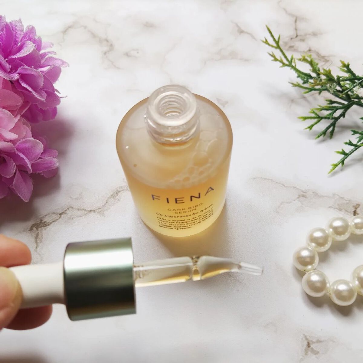 しっとりな使い心地がうれしい💛 高級感のあるガラスボトルがとっても素敵です! オイル層とローション層に分かれてるのでまずはよ~く振ってから使ってね。 オイルが入っているとは思えないようなサラッとしたテクスチャー✨ なじませると、みずみずしく しっとりとした使い心地です🤍 肌にほどよいツヤ感が出るので、ツヤ肌メイク好きの方にも向いている思う! 9つのフリー処方なのも、ゆらぎ肌にはうれしい処方だよね。