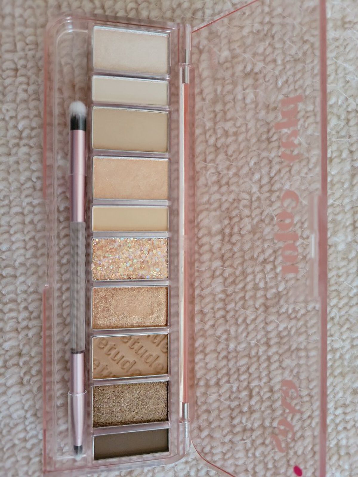 - 肌なじみの良い、鮮やかな発色で目元を華やかに彩る捨て色なしの10色アイシャドウパレット 異なる3種のテクスチャーを自由に組み合わせて、グラデーションも思いのままに。 NEW 2023.4 ・肌トーンにあう配色を詰め込んだトレンドカラー 肌トーンに合わせて、自分に似合うトレンドカラーが楽しめる♡ パーソナルカラー×トレンドカラーの掛け合わせパレットで、デイリーメイクもスペシャルメイクも気分にあわせてなりたい自分に! ・むにゅっとジェル質感ラメで高密着、煌めく目元 パレットの中でもポイントとなる大きめ粒子のラメは、ジェルのような新質感で落ちにくく肌にぴったりと密着します。キラキラとした目元をキープします。 ・使うカラーは大きめに!リアル捨て色なしパレット ベースやラメのよく使うカラーと締め色や濃い色等の減りが少ないカラーを異なるサイズで詰め込んだ、リアル捨て色なしパレット! <使用方法> 付属のデュアルシャドウブラシでベースカラーをまぶた全体に塗り広げます。細いブラシでグラデーションや目尻、アイライン、涙袋などのポイントカラーをのせて仕上げます。