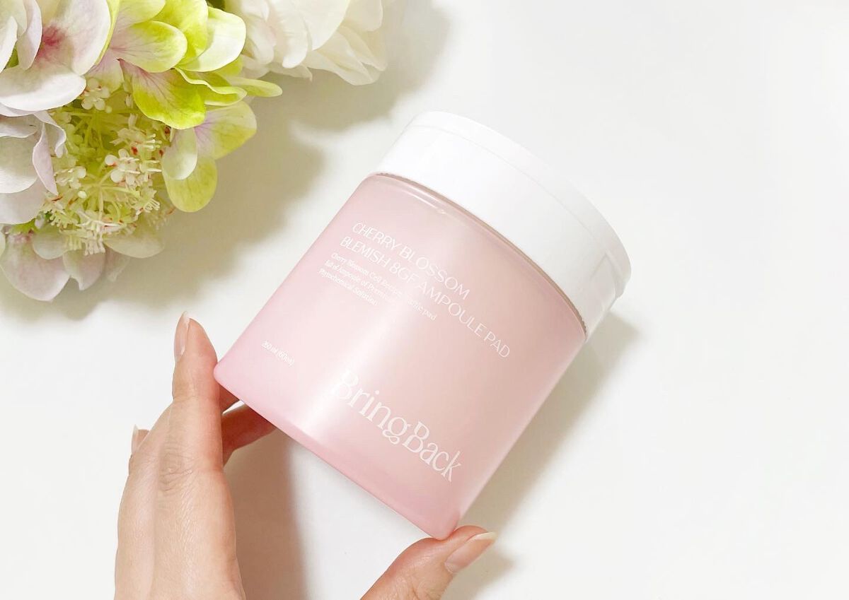 桜セラムは.. 韓国の済州島から抽出した チェリーブロッサムウォーターを86%配合。 8GF成分も入っていてシミくすみに効果のある プレミアムスキンケアライン🌸 パッドはたっぷり60枚入り✨ 他社製品の同じ枚数入りパッドに比べると なんだかボトルが大きい👀!その秘密は.. お布団パッドと呼ばれる ふんわり厚手の純綿シート🛏️💕 厚手なうえに大きめサイズで たっぷりのアンプルを含んだシートは潤いたっぷり✨ 部分パックをしたあと拭き取りに使用しても 乾くことなくしっとり感を実感できます◎