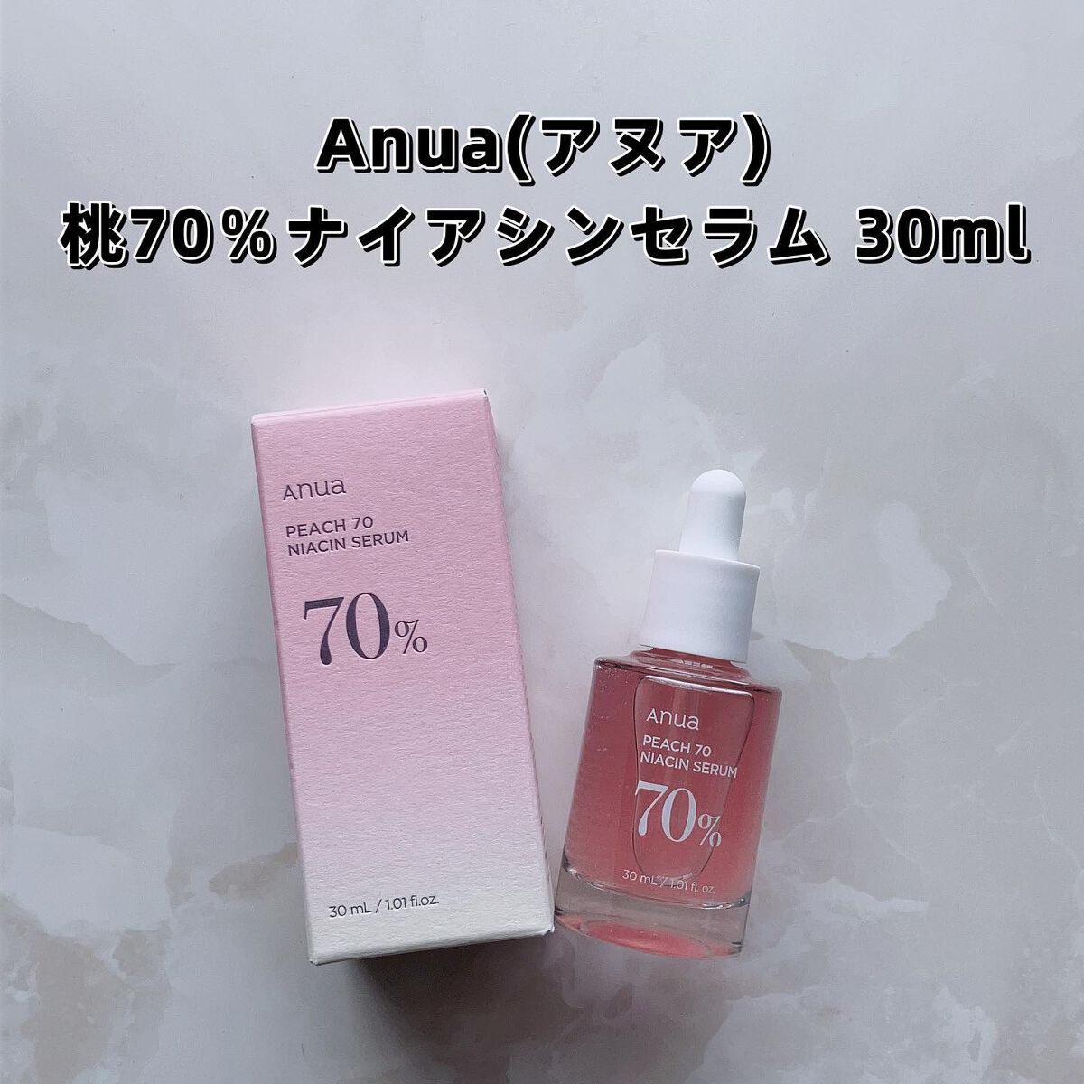 .Anua(アヌア)桃70%ナイアシンセラム30ml以前Anuaドクダミ80%水分沈静アンプルを試させていただいてリピートして愛用中なんですがなんと今回は2023年1月1日に新発売されているこちらを試させていただきました🍑「つるんと白桃肌を叶...