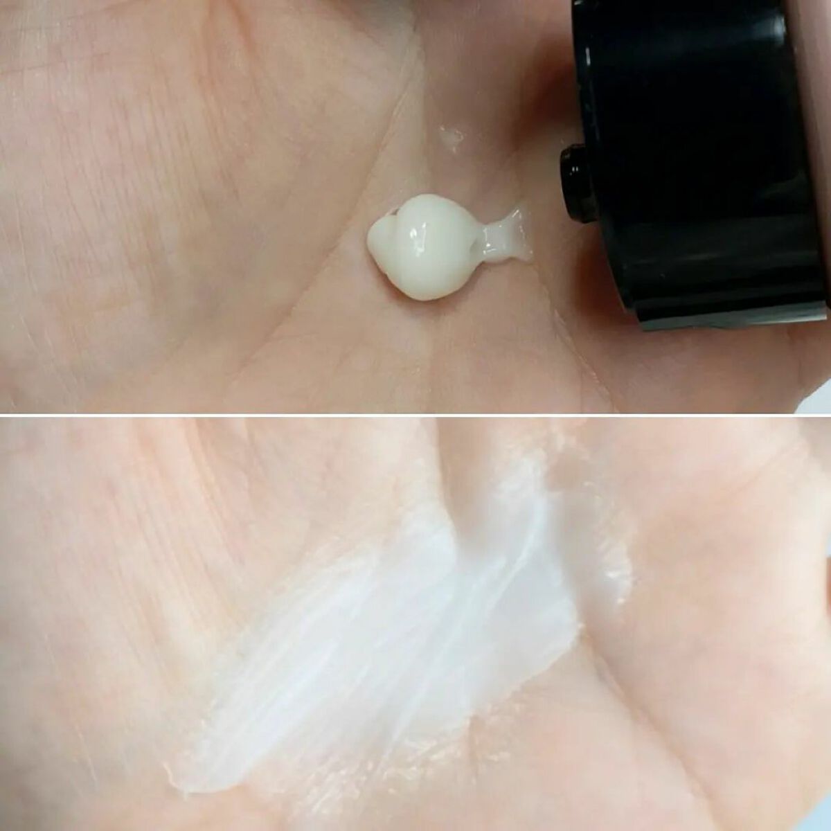 硬めのテクスチャーでチューブを強く押さないと出てきません🤣笑 米粒1粒程度という極小量で、両目の上下まぶたが十分に塗れます❗ 色は少し白っぽいですが気になるほどでもなく、ウォータープルーフ処方ですが夕方になっても乾燥せず、持ちも良かったです👍❤️ 二重幅にアイシャドウが溜まることもなかったです‼ 550円って考えたら破格😳 かなり能力の高いアイシャドウベースだと思います🧡