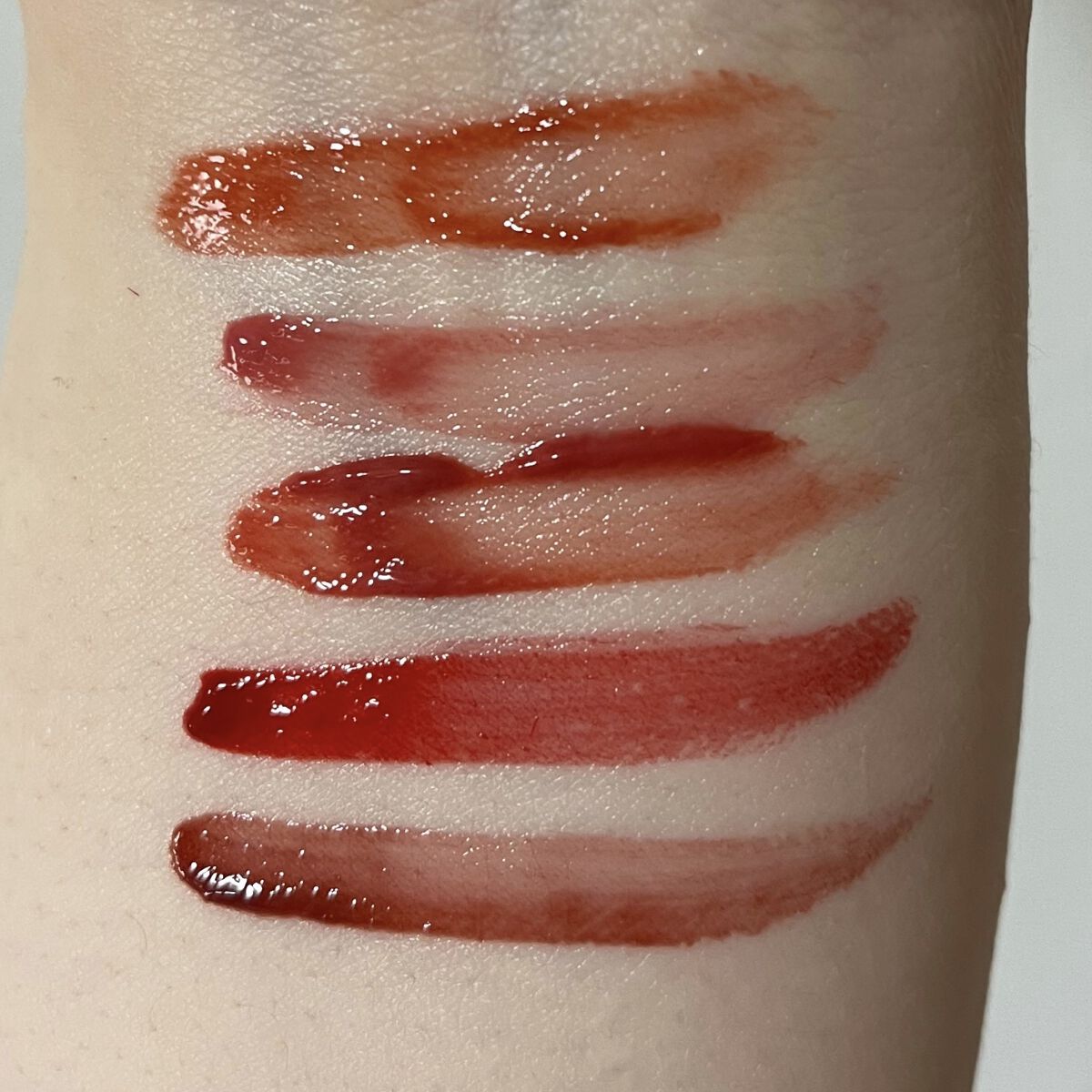 - <ピュアコーラル> 水、トリメチルシロキシフェニルジメチコン、オクチルドデカノール、ダイマージリノール酸ダイマージリノレイルビス(ベヘニル/イソステアリル/フィトステリル)、ポリアミド-8、リンゴ酸ジイソステアリル、ポリソルベート60、BG、セタノール、グリセリン、セスキオレイン酸ソルビタン、変性アルコール、(アクリル酸ヒドロキシエチル/アクリロイルジメチルタウリンNa)コポリマー、ヨーロッパキイチゴ葉エキス、(カプリル酸/カプリン酸)ヤシアルキル、加水分解ヒアルロン酸、(ヒマシ油/IPDI)コポリマー、(カプリル酸/カプリン酸/コハク酸)トリグリセリル、エチルヘキシルグリセリン、トリ(カプリル酸/カプリン酸)グリセリル、カプリリルグリコール、1,2-ヘキサンジオール、トコフェロール、ポリアクリレート-13、ポリイソブテン、テトラ(ジ-t-ブチルヒドロキシヒドロケイヒ酸)ペンタエリスリチル、イソステアリン酸ソルビタン、ポリソルベート20、デヒドロ酢酸、フィチン酸Na、香料、酸化チタン、黄5、赤227、青1 <メロウピンク> 水、トリメチルシロキシフェニルジメチコン、オクチルドデカノール、ダイマージリノール酸ダイマージリノレイルビス(ベヘニル/イソステアリル/フィトステリル)、ポリアミド-8、リンゴ酸ジイソステアリル、ポリソルベート60、BG、セタノール、グリセリン、セスキオレイン酸ソルビタン、変性アルコール、(アクリル酸ヒドロキシエチル/アクリロイルジメチルタウリンNa)コポリマー、ヨーロッパキイチゴ葉エキス、(カプリル酸/カプリン酸)ヤシアルキル、加水分解ヒアルロン酸、(ヒマシ油/IPDI)コポリマー、(カプリル酸/カプリン酸/コハク酸)トリグリセリル、エチルヘキシルグリセリン、トリ(カプリル酸/カプリン酸)グリセリル、カプリリルグリコール、1,2-ヘキサンジオール、トコフェロール、ポリアクリレート-13、ポリイソブテン、テトラ(ジ-t-ブチルヒドロキシヒドロケイヒ酸)ペンタエリスリチル、イソステアリン酸ソルビタン、ポリソルベート20、デヒドロ酢酸、フィチン酸Na、香料、酸化チタン、黄5、赤227、青1 <デューイーフィグ> 水、トリメチルシロキシフェニルジメチコン、オクチルドデカノール、ダイマージリノール酸ダイマージリノレイルビス(ベヘニル/イソステアリル/フィトステリル)、ポリアミド-8、リンゴ酸ジイソステアリル、ポリソルベート60、BG、セタノール、グリセリン、セスキオレイン酸ソルビタン、変性アルコール、(アクリル酸ヒドロキシエチル/アクリロイルジメチルタウリンNa)コポリマー、ヨーロッパキイチゴ葉エキス、(カプリル酸/カプリン酸)ヤシアルキル、加水分解ヒアルロン酸、(ヒマシ油/IPDI)コポリマー、(カプリル酸/カプリン酸/コハク酸)トリグリセリル、エチルヘキシルグリセリン、トリ(カプリル酸/カプリン酸)グリセリル、カプリリルグリコール、1,2-ヘキサンジオール、トコフェロール、ポリアクリレート-13、ポリイソブテン、テトラ(ジ-t-ブチルヒドロキシヒドロケイヒ酸)ペンタエリスリチル、イソステアリン酸ソルビタン、ポリソルベート20、デヒドロ酢酸、フィチン酸Na、香料、酸化チタン、黄5、赤227、青1 <チリングレッド> 水、トリメチルシロキシフェニルジメチコン、オクチルドデカノール、ダイマージリノール酸ダイマージリノレイルビス(ベヘニル/イソステアリル/フィトステリル)、ポリアミド-8、リンゴ酸ジイソステアリル、ポリソルベート60、BG、セタノール、グリセリン、セスキオレイン酸ソルビタン、変性アルコール、(アクリル酸ヒドロキシエチル/アクリロイルジメチルタウリンNa)コポリマー、ヨーロッパキイチゴ葉エキス、(カプリル酸/カプリン酸)ヤシアルキル、加水分解ヒアルロン酸、(ヒマシ油/IPDI)コポリマー、(カプリル酸/カプリン酸/コハク酸)トリグリセリル、エチルヘキシルグリセリン、トリ(カプリル酸/カプリン酸)グリセリル、カプリリルグリコール、1,2-ヘキサンジオール、トコフェロール、ポリアクリレート-13、ポリイソブテン、テトラ(ジ-t-ブチルヒドロキシヒドロケイヒ酸)ペンタエリスリチル、イソステアリン酸ソルビタン、ポリソルベート20、デヒドロ酢酸、フィチン酸Na、香料、黄5、赤227、青1 <モーヴメント> 水、トリメチルシロキシフェニルジメチコン、オクチルドデカノール、ダイマージリノール酸ダイマージリノレイルビス(ベヘニル/イソステアリル/フィトステリル)、ポリアミド-8、リンゴ酸ジイソステアリル、ポリソルベート60、BG、セタノール、グリセリン、セスキオレイン酸ソルビタン、変性アルコール、(アクリル酸ヒドロキシエチル/アクリロイルジメチルタウリンNa)コポリマー、ヨーロッパキイチゴ葉エキス、(カプリル酸/カプリン酸)ヤシアルキル、加水分解ヒアルロン酸、(ヒマシ油/IPDI)コポリマー、(カプリル酸/カプリン酸/コハク酸)トリグリセリル、エチルヘキシルグリセリン、トリ(カプリル酸/カプリン酸)グリセリル、カプリリルグリコール、1,2-ヘキサンジオール、トコフェロ