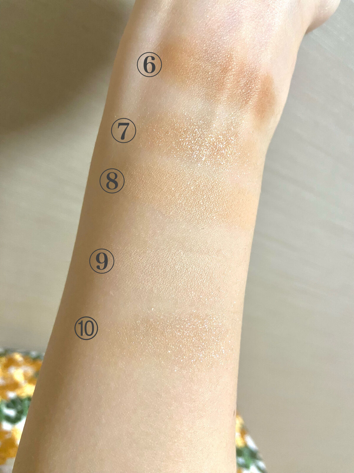 色味が多くて嬉しい( ∩ˇωˇ∩)♡ 発色はとても優しめで、濃いめの発色が好きな私にとっては少しもの足りなかったです🥲 付けてるんかわからんくらいの色もあった ラメはしっかりキラキラするタイプでつけすぎ注意です 個人的に⑤のラメがめちゃくちゃ可愛かった! ナチュラルメイクが好きな人や、すっぴん風に見せたい時に使うのがおすすめです🍃