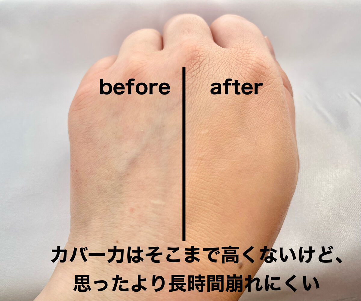美容液リキッドファンデというキャッチコピーの通り、ファンデを塗っている感覚がなくなるくらいつけていて心地が良い…☺️ テクスチャーも軽めで、少量でしっかり全顔に広げられるほど伸びがよい🙆♀️ 薄づきでもカバー力はあるので、少量でしっかり毛穴をカバー!毛穴レスなつるん肌になれるのがありがたい🥹 ツヤ肌系のファンデなので、まったく崩れない!というわけではないけれど崩れにくいし、崩れても崩れ方がキレイなので、お直しもしやすい ツヤ肌が好きだし、顔タイプ的にもツヤ系が合うので手持ちのファンデで1番盛れると思っている😂 ツヤ肌好きな人には自信を持っておすすめしたい!