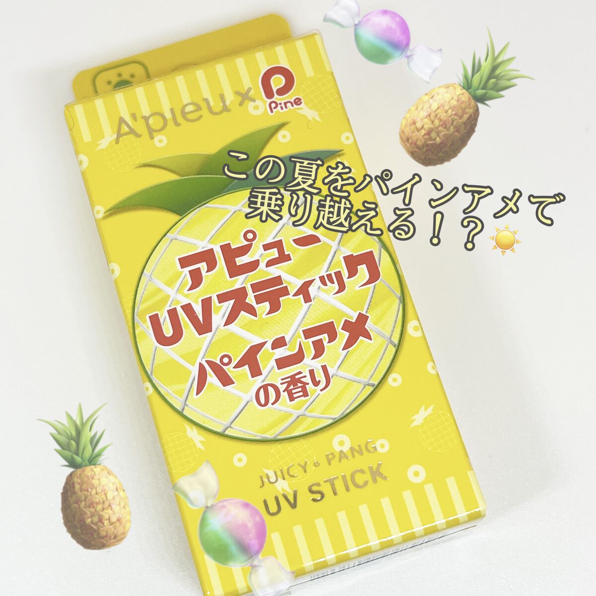 A’pieuアピュージューシーパンUVスティックメロンバー顔•からだ用SPF50+PA++++¥1650/15gアルコールフリーパラベンフリー汗水に強いナイアシンアミド(保湿成分)配合アイスのメロンバーの香りがします。顔につけると香らないです...