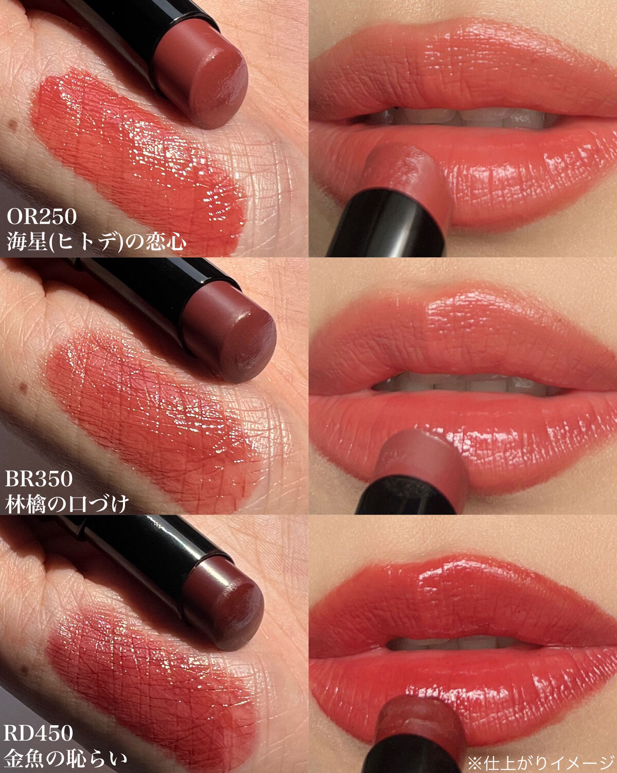 - <BE351 桃のはにかみ> ジフェニルジメチコン、デカエチルヘキサン酸ポリグリセリル-10、(VP/ヘキサデセン)コポリマー、イソドデカン、トリメチルシロキシフェニルジメチコン、テトラエチルヘキサン酸ペンタエリスリチル、トリイソステアリン酸ポリグリセリル-2、合成ワックス、ジメチコン、フェニルトリメチコン、イソステアリン酸デキストリン、DPG、トコフェロール、ヒアルロン酸Na、BHT、(エイコセン/ビニルピロリドン)コポリマー、(エチレン/プロピレン)コポリマー、カルナウバロウ、キャンデリラロウ、キャンデリラロウエステルズ、ジメチルシリル化シリカ、スクワラン、トリイソステアリン酸イソプロピルチタン、ハイドロゲンジメチコン、メチコン、水酸化Al、炭酸Ca、酸化チタン、酸化鉄、黄4、赤202 <BR350 林檎の口づけ> ジフェニルジメチコン、デカエチルヘキサン酸ポリグリセリル-10、(ビニルピロリドン/ヘキサデセン)コポリマー、イソドデカン、トリメチルシロキシフェニルジメチコン、テトラエチルヘキサン酸ペンタエリスリチル、トリイソステアリン酸ポリグリセリル-2、合成ワックス、ジメチコン、フェニルトリメチコン、イソステアリン酸デキストリン、DPG、トコフェロール、ヒアルロン酸Na、BHT、(エイコセン/ビニルピロリドン)コポリマー、(エチレン/プロピレン)コポリマー、アルミナ、カルナウバロウ、キャンデリラロウ、キャンデリラロウエステルズ、シリカ、ジメチルシリル化シリカ、スクワラン、ハイドロゲンジメチコン、炭酸Ca、酸化チタン、酸化鉄、黄4、赤202 <BR352 駆け引きワイン(限定)> ジフェニルジメチコン、デカエチルヘキサン酸ポリグリセリル-10、(VP/ヘキサデセン)コポリマー、イソドデカン、トリメチルシロキシフェニルジメチコン、テトラエチルヘキサン酸ペンタエリスリチル、合成ワックス、ジメチコン、フェニルトリメチコン、トリイソステアリン酸ポリグリセリル-2、イソステアリン酸デキストリン、DPG、トコフェロール、ヒアルロン酸Na、BHT、(エイコセン/ビニルピロリドン)コポリマー、(エチレン/プロピレン)コポリマー、アルミナ、カルナウバロウ、キャンデリラロウ、キャンデリラロウエステルズ、シリカ、ジメチルシリル化シリカ、スクワラン、ハイドロゲンジメチコン、炭酸Ca、酸化チタン、酸化鉄、黄4、赤202 <OR250 海星の恋心> ジフェニルジメチコン、デカエチルヘキサン酸ポリグリセリル-10、(ビニルピロリドン/ヘキサデセン)コポリマー、イソドデカン、トリメチルシロキシフェニルジメチコン、トリイソステアリン酸ポリグリセリル-2、テトラエチルヘキサン酸ペンタエリスリチル、合成ワックス、ジメチコン、フェニルトリメチコン、イソステアリン酸デキストリン、DPG、トコフェロール、ヒアルロン酸Na、BHT、(エイコセン/ビニルピロリドン)コポリマー、(エチレン/プロピレン)コポリマー、アルミナ、カルナウバロウ、キャンデリラロウ、キャンデリラロウエステルズ、シリカ、ジメチルシリル化シリカ、スクワラン、ハイドロゲンジメチコン、炭酸Ca、酸化チタン、酸化鉄、黄4、赤202 <PK850 うさぎの恋人> ジフェニルジメチコン、デカエチルヘキサン酸ポリグリセリル-10、(ビニルピロリドン/ヘキサデセン)コポリマー、イソドデカン、トリメチルシロキシフェニルジメチコン、テトラエチルヘキサン酸ペンタエリスリチル、トリイソステアリン酸ポリグリセリル-2、合成ワックス、ジメチコン、フェニルトリメチコン、イソステアリン酸デキストリン、DPG、トコフェロール、ヒアルロン酸Na、BHT、(エイコセン/ビニルピロリドン)コポリマー、(エチレン/プロピレン)コポリマー、アルミナ、カルナウバロウ、キャンデリラロウ、キャンデリラロウエステルズ、シリカ、ジメチルシリル化シリカ、スクワラン、ハイドロゲンジメチコン、炭酸Ca、酸化チタン、酸化鉄、黄4、赤202 <PK851 わがままな肉球> ジフェニルジメチコン、デカエチルヘキサン酸ポリグリセリル-10、(ビニルピロリドン/ヘキサデセン)コポリマー、イソドデカン、トリメチルシロキシフェニルジメチコン、テトラエチルヘキサン酸ペンタエリスリチル、トリイソステアリン酸ポリグリセリル-2、合成ワックス、ジメチコン、フェニルトリメチコン、イソステアリン酸デキストリン、DPG、トコフェロール、ヒアルロン酸Na、BHT、(エイコセン/ビニルピロリドン)コポリマー、(エチレン/プロピレン)コポリマー、アルミナ、カルナウバロウ、キャンデリラロウ、キャンデリラロウエステルズ、シリカ、ジメチルシリル化シリカ、スクワラン、ハイドロゲンジメチコン、炭酸Ca、酸化チタン、酸化鉄、黄4、赤202 <PK852 桜の微笑み> ジフェニルジメチコン、デカエチルヘキサン酸ポリグリセリル-10、(VP/ヘキサデセン)コポリマー、イソドデカン、トリメチルシロキシフェニルジメチコン、テトラエチルヘキサン酸ペンタエリスリチル、合成ワックス、トリイソステアリン酸ポリグリセリル-2、ジメチコン、フェニルトリメ
