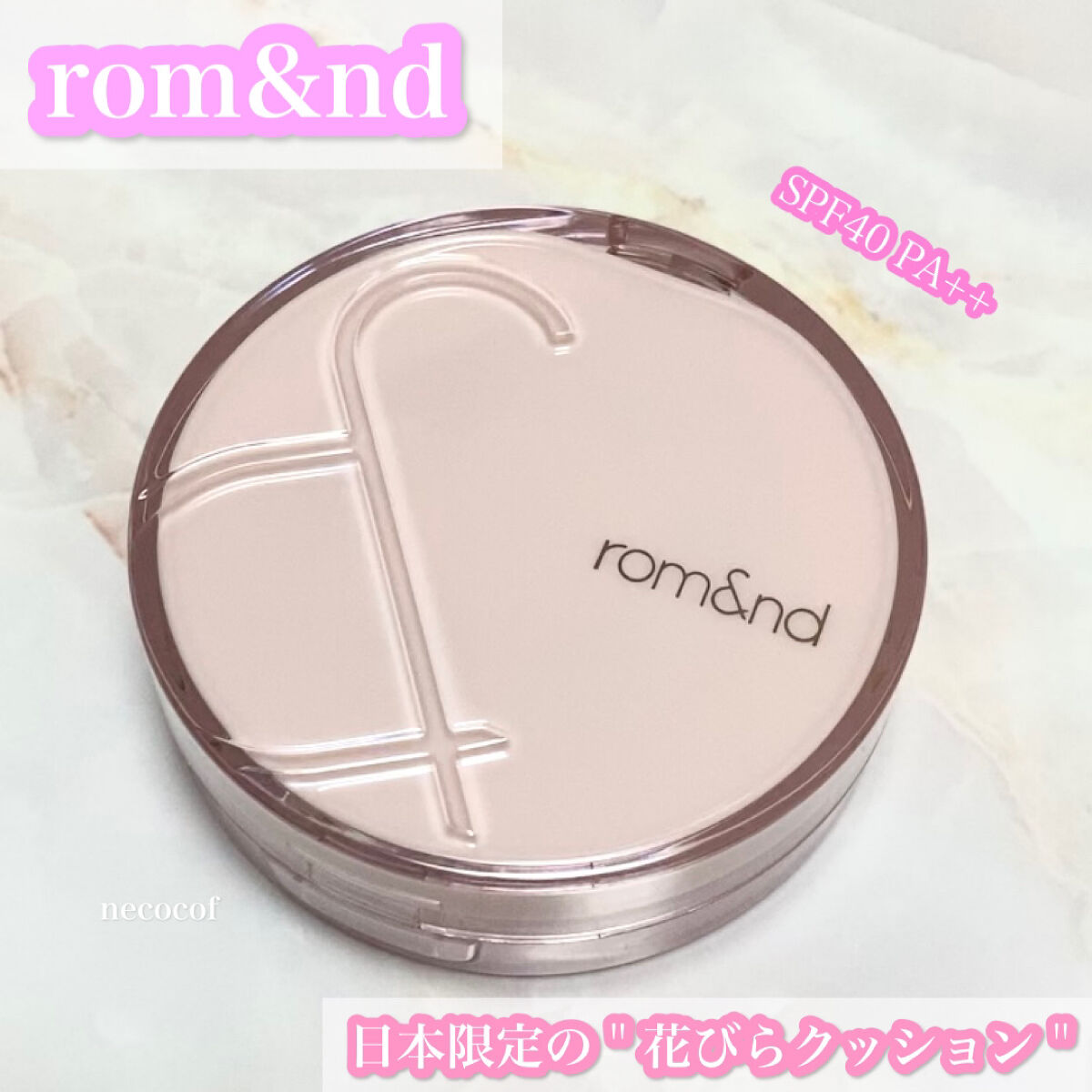 こんばんは🌙今回はrom&ndのブルームインカバーフィットクッション19Cピュアをご紹介します💗💗こちらは、ロムアンドのラッキーバッグに入っていました✨️外箱にひよんちゃんが載っていて、ひよんちゃんオススメの日本人向けに作られたクッションファ...