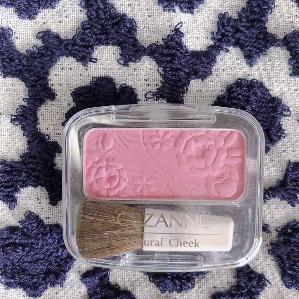 セザンヌのプチプラアイテム「ナチュラル チークN」のふんわりヘルシーなカラーを買ってみた👏 明るい発色のベースカラーにゴールド系の微細パールがキラッと可愛い♡ 自然なツヤのある仕上がりも素敵✨️ これでワンコイン以下のプチプラなのは感動🥹