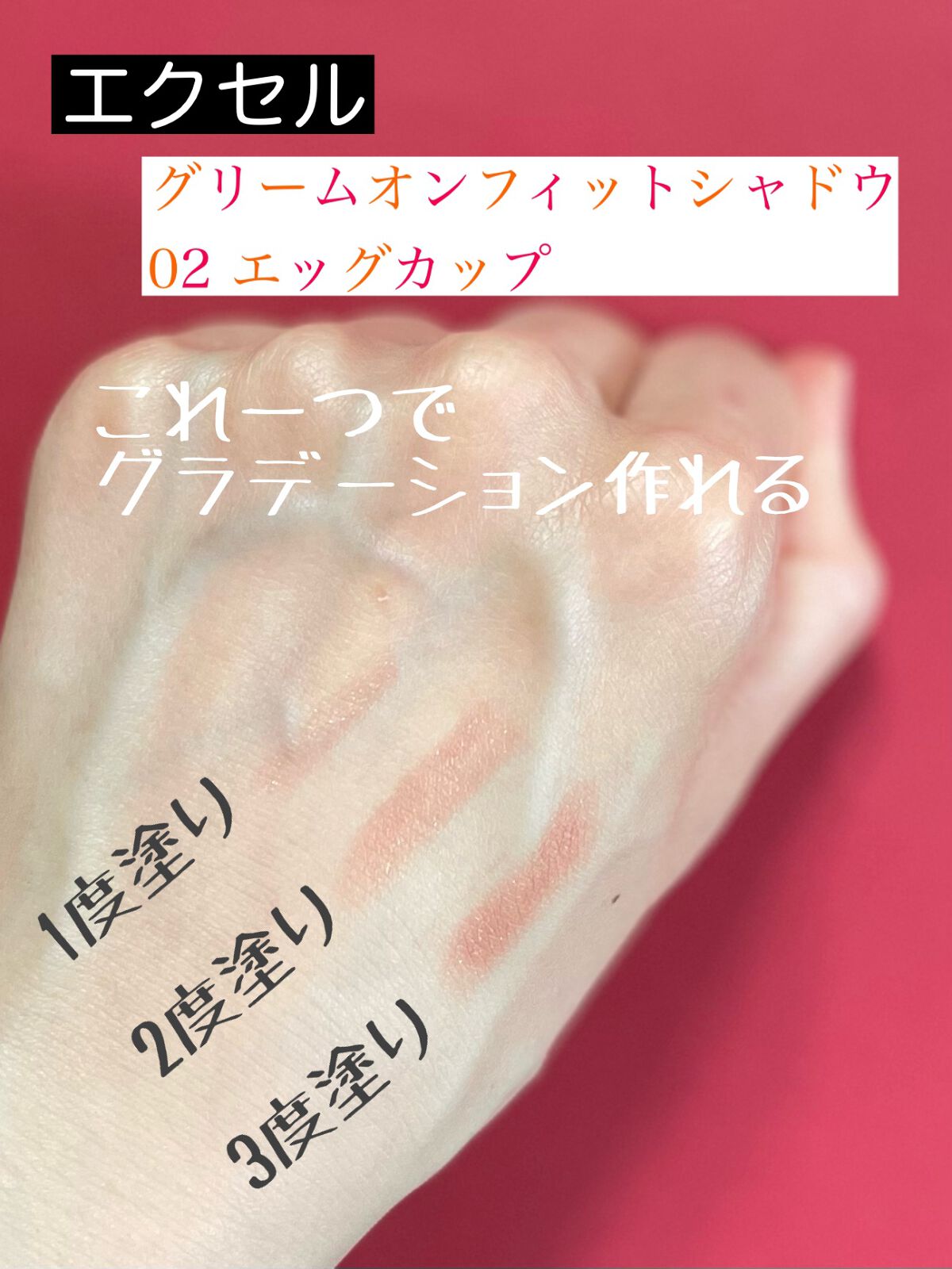 ▪︎excelエクセルグリームオンフィットシャドウGF02エッグカップ﹏﹏﹏﹏﹏﹏﹏﹏﹏﹏﹏﹏﹏アイシャドウはいつも指で塗っていたのですが、ペンシルタイプなら手を汚さずに使えそうだな〜と思い、試してみました✨ちょうどよい硬さでスルスル塗れる使...