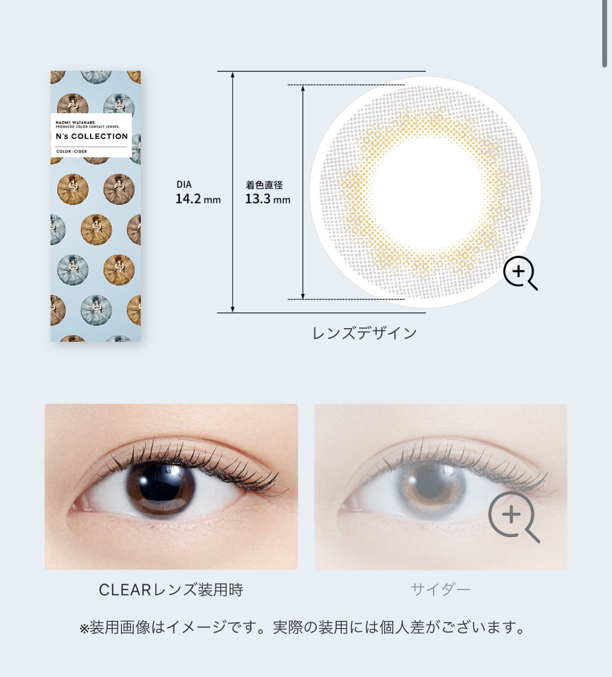 - ※2025年6月以降、商品パッケージ裏面・側面の一部表記を順次変更いたします。尚、これにかかる商品の交換・返品は承っておりません。 「大きく見せる」「盛る」といった従来の視点だけではなく、メイクと合わせることでより魅力的な印象をつくる“メイクを引き立たせるカラコン”をコンセプトにレンズを開発。 プロデューサーである渡辺直美さんが発信するトレンドのしっかりメイクに合うレンズデザインから、日常的なナチュラルメイクに合うデザインまで、さまざまなメイクを引き立てる11種類のレンズを展開します。 カラーコンタクトレンズの不適正使用による眼障害の危険性等などがあります。 ●コンタクトレンズは高度管理医療機器です。不十分な洗浄・消毒など不適切なケアや、長時間・交換期間を超えた装用により、アレルギー性結膜炎、角膜感染症、角膜潰瘍等の重篤な眼障害が発生する危険性があります ●ご使用前に取扱説明書を確認してください 使用上の留意事項 ●眼科医院等を受診してからお求めください ●眼に異常を感じたら直ちにレンズ使用を中止し、お近くの眼科等で診察を受けてください ●医師の指示にしたがってご使用ください ●コンタクトレンズを装用する場合、自覚症状がなくても、眼科医院等での定期検査を受けてください ●レンズに不具合がある場合は使用しないでください