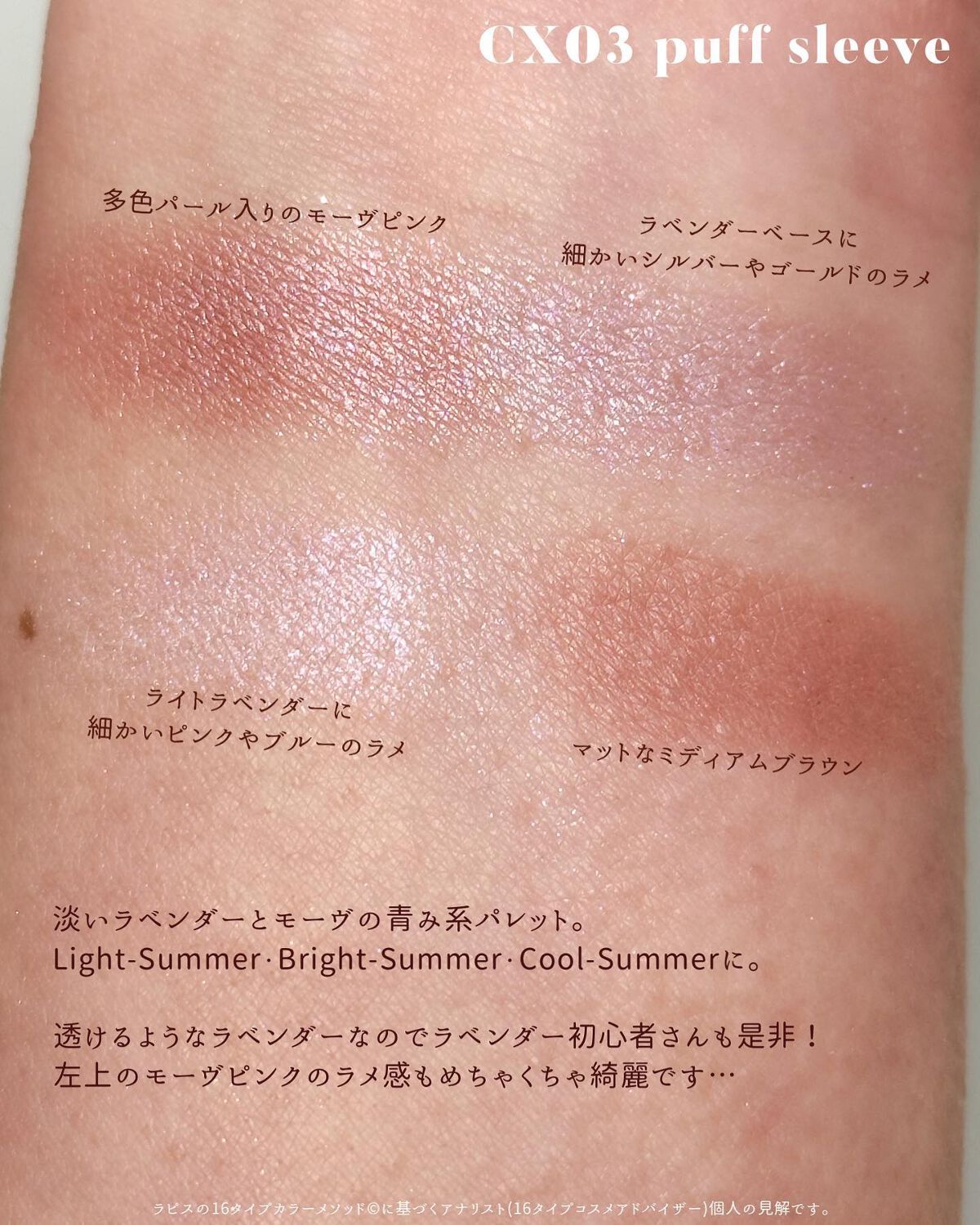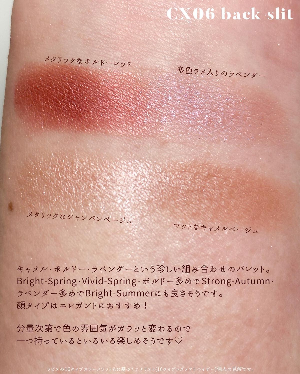 | 3つの異なる質感からなる4色パレットで、使い方によって雰囲気も質感も変わっていきます✨ | 詳細を見る |