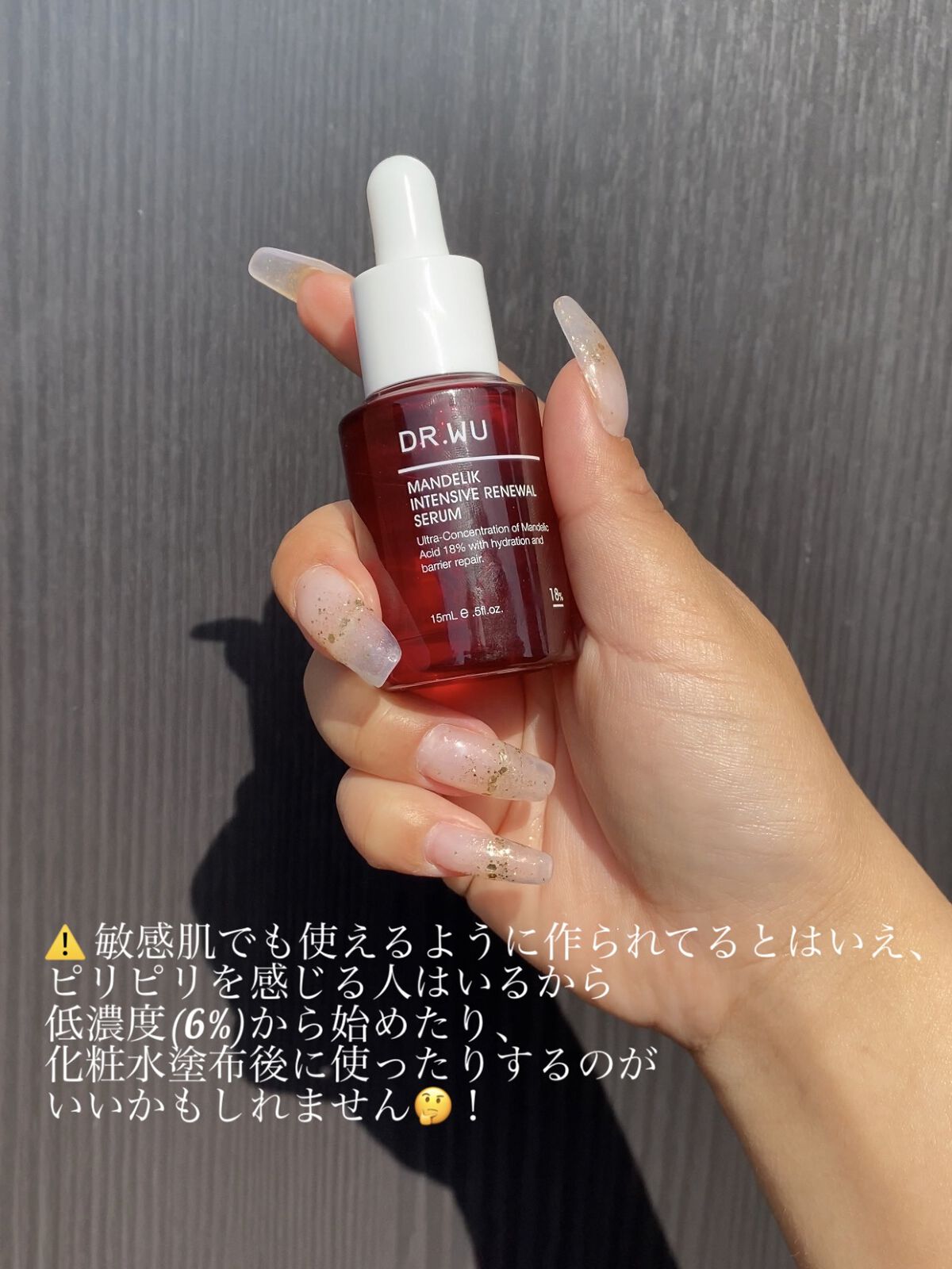 今回ご紹介するのは【DR.WU マンデル酸ピーリング】です!毛穴ケア、いちご鼻と戦ってる方はご存知の方も多いはず? 水っぽいオイルのような感じでした!アルコールフリーなのも嬉しいですね。 毛穴の黒ずみと開きが軽減されました!でも混合肌で小鼻はテカりやすいので、使用した直後は小鼻サラサラですが翌朝はちょっと脂っぽいです…