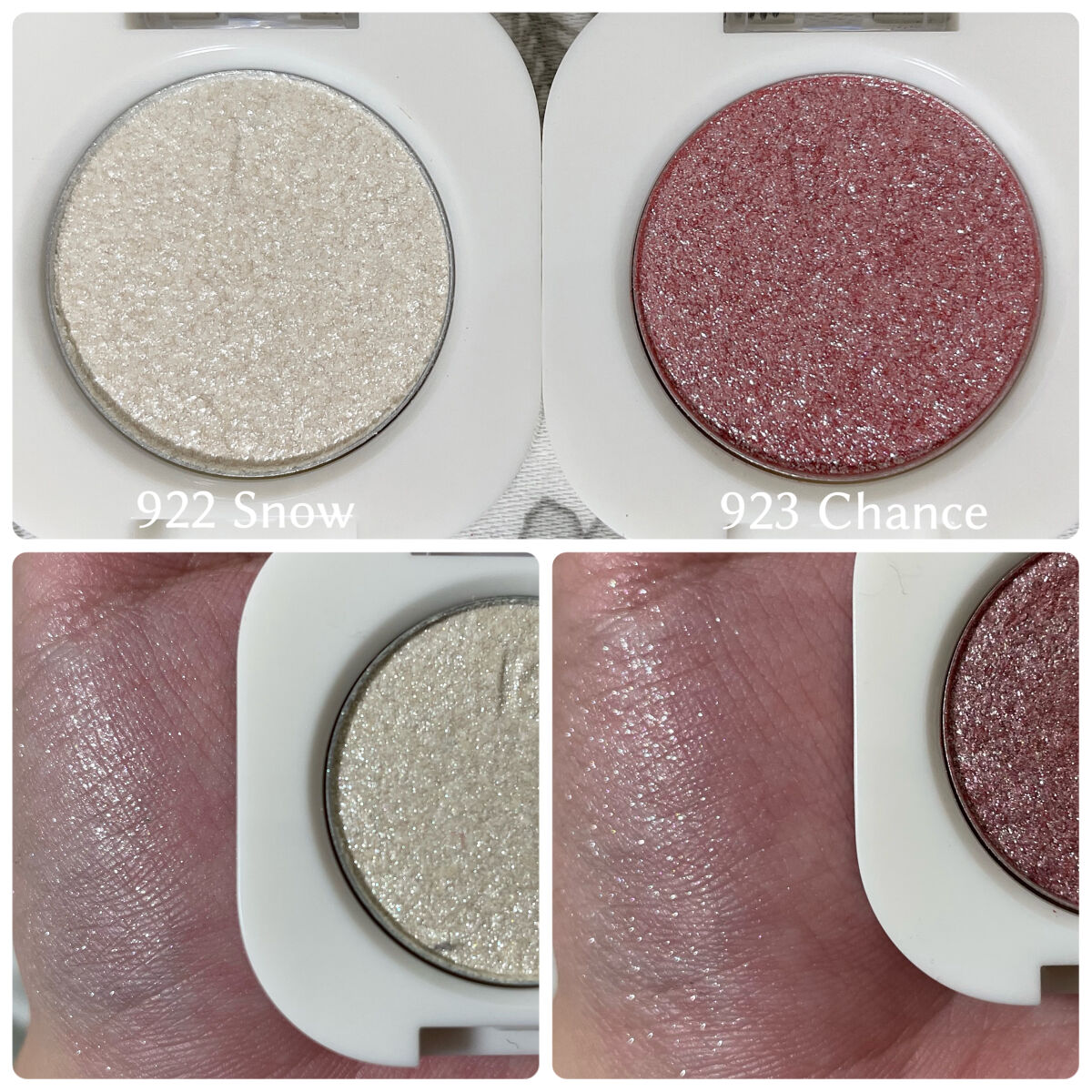 Laka⧉モノアイシャドウ⧉細やかな光にも爽やかに輝く、ラメパウダーが敷きつめられたグリッターシャドウ922Snow923Chance✼••••✼••••✼私が購入したのはグリッターシャドウの2色✨922Snowはバニラベースのホワイト・シル...