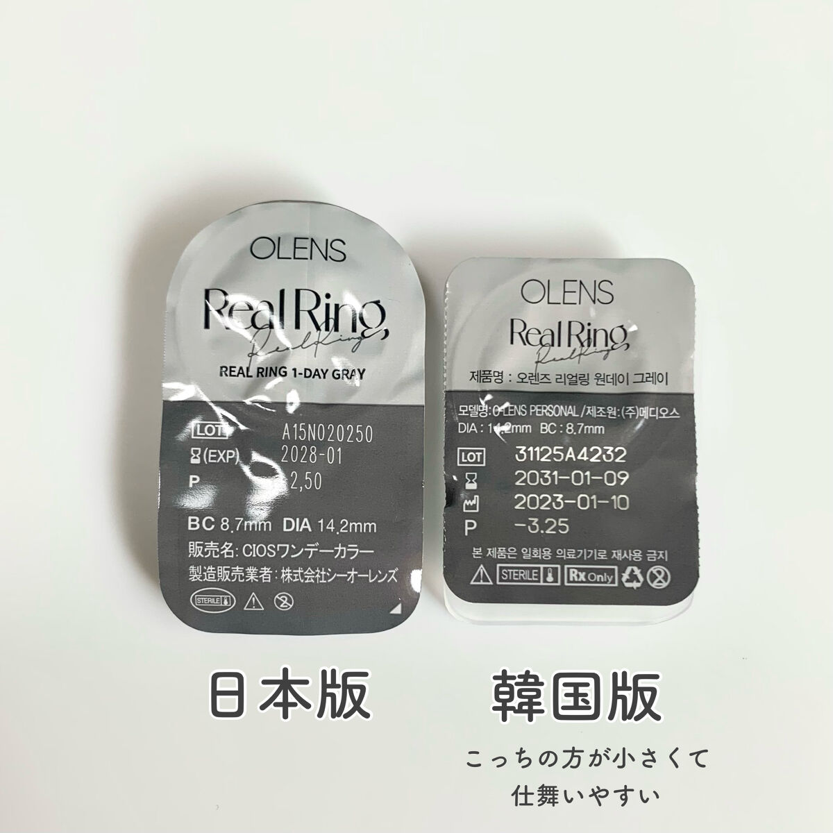 - ■OLENS Real Ring(オーレンズリアルリング) 韓国カラコン業界の話題のブランド『OLENS(オーレンズ)』の日本正式承認商品シリーズ。世界中から注目を浴びるグループ「NewJeans (ニュージーンズ)」がイメージモデル。透明感のある発色が瞳に馴染み、リアルな透明感が叶うシリーズ。どのカラーも使いやすく自然にくっきりした目元を演出しちゃいます! ■使い方 コンタクトレンズは高度管理医療機器です。必ず眼科医の処方に従って購入してください。 ■使用上の留意事項 コンタクトレンズは高度管理医療機器です。眼科医の指導に従い装用期間を厳守し、正しくお使いください。眼の定期検査を必ず受けてください。添付文書を必ず読み、取扱方法、装用時間を守って正しくお使いください。少しでも異常を感じたら、直ちに眼科医の検査を受けてください。