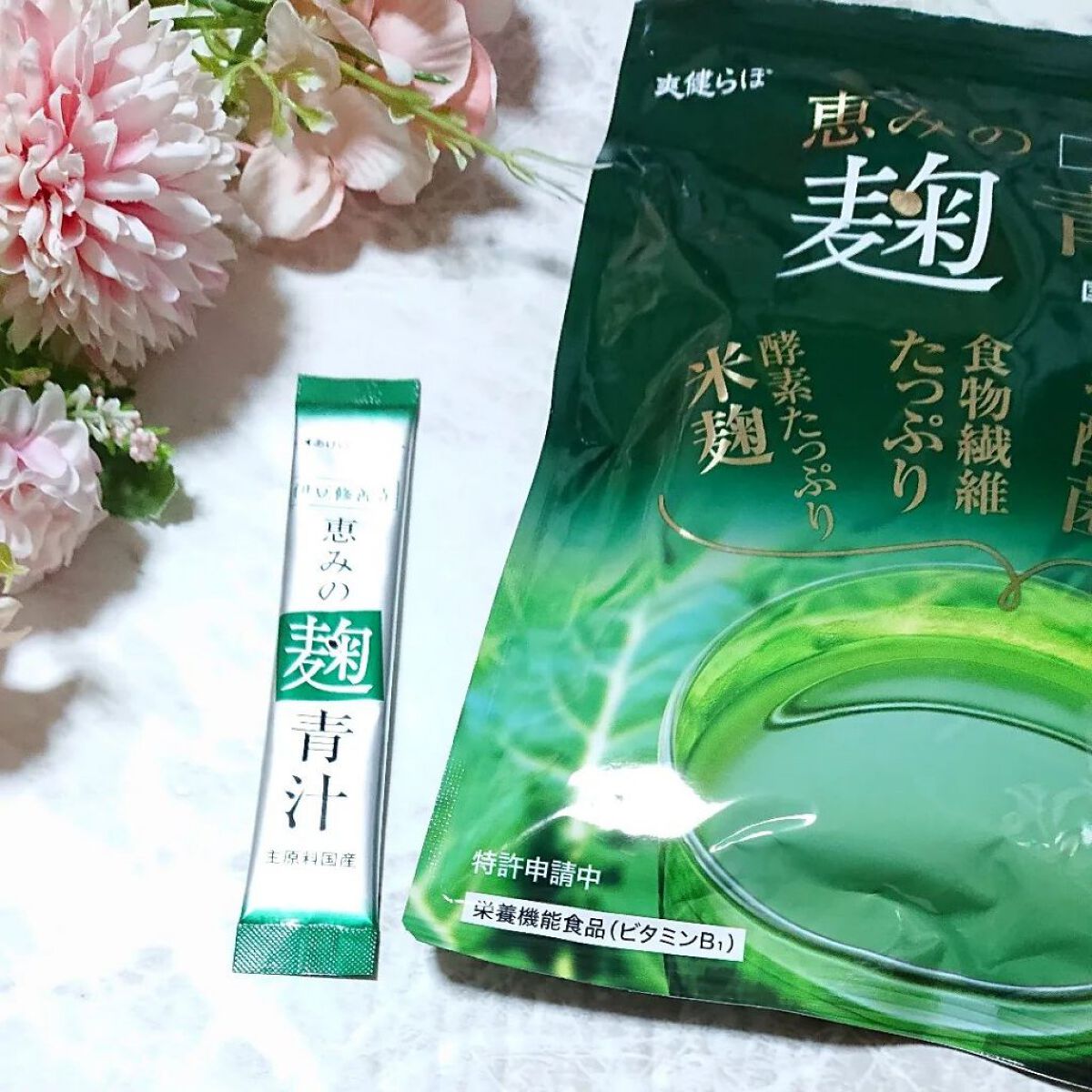 無農薬・有機的な栽培方法でイキイキと育った『大麦若葉』と『ケール』をはじめ、 100%国産米で作られた『麹』や、腸まで届く『乳酸菌(EC-12)』、海洋深層水から抽出した天然の『ミネラル』も配合されています❤ 青汁だけど 味は抹茶のような味わいで、想像していたよりサッパリとして、とても飲みやすく感じました😊❤ 青臭さや苦みがないので、毎日続けて飲めそうです🎵 青汁が苦手な方も、飲みやすいんじゃないかなと思いました😊✨