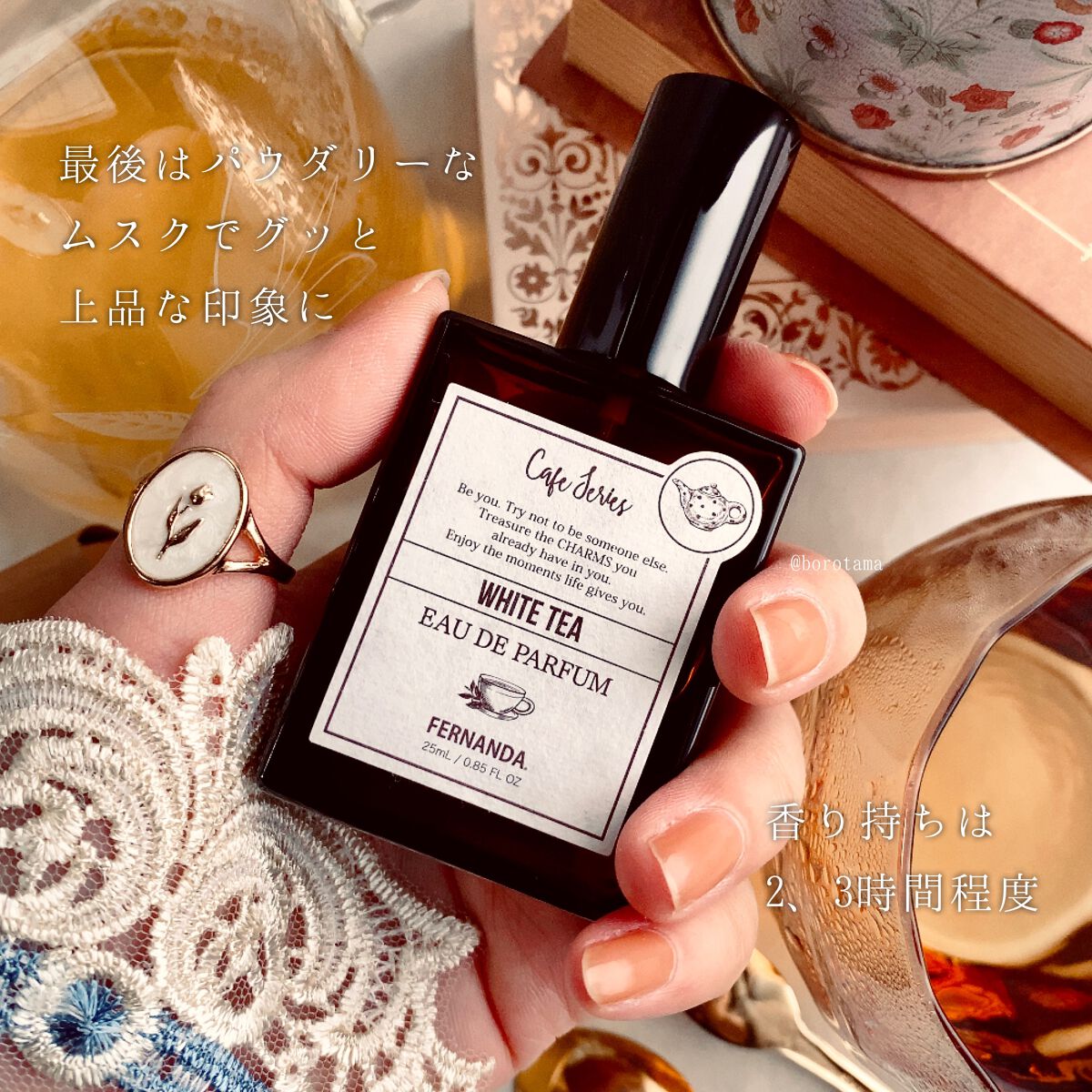 季節、気分、服装、メイク、天気などによって纏う香りを変えたいため、プチプラ香水を色々と試してきました☺️ 最初からアルコールはあまり感じず落ち着く優しい甘さが香ります🍊 紅茶の香水の中で1番お気に入りです🫖 甘さや雑味がない透明感のある香りで春に使いたくなります𓍯