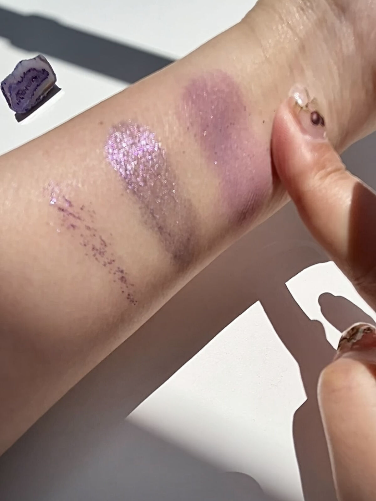 とことんラメまみれのパレットなのに、全然うるさくならない!むしろ色を重ねるほど、まぶたに溶け込むように馴染んでいく。 このじゅんわり感が蝋燭のやさしい炎みたいで、華やかなのにどこかホッとする癒しパレットです🪔 ちょっとネオンっぽい発色?これはこれでイルミネーションのようで、無事エモさ爆発です🎄 2色混ぜめっちゃカンタン!これといった締め色がないのにちゃんとメリハリが出るところがすごい👀