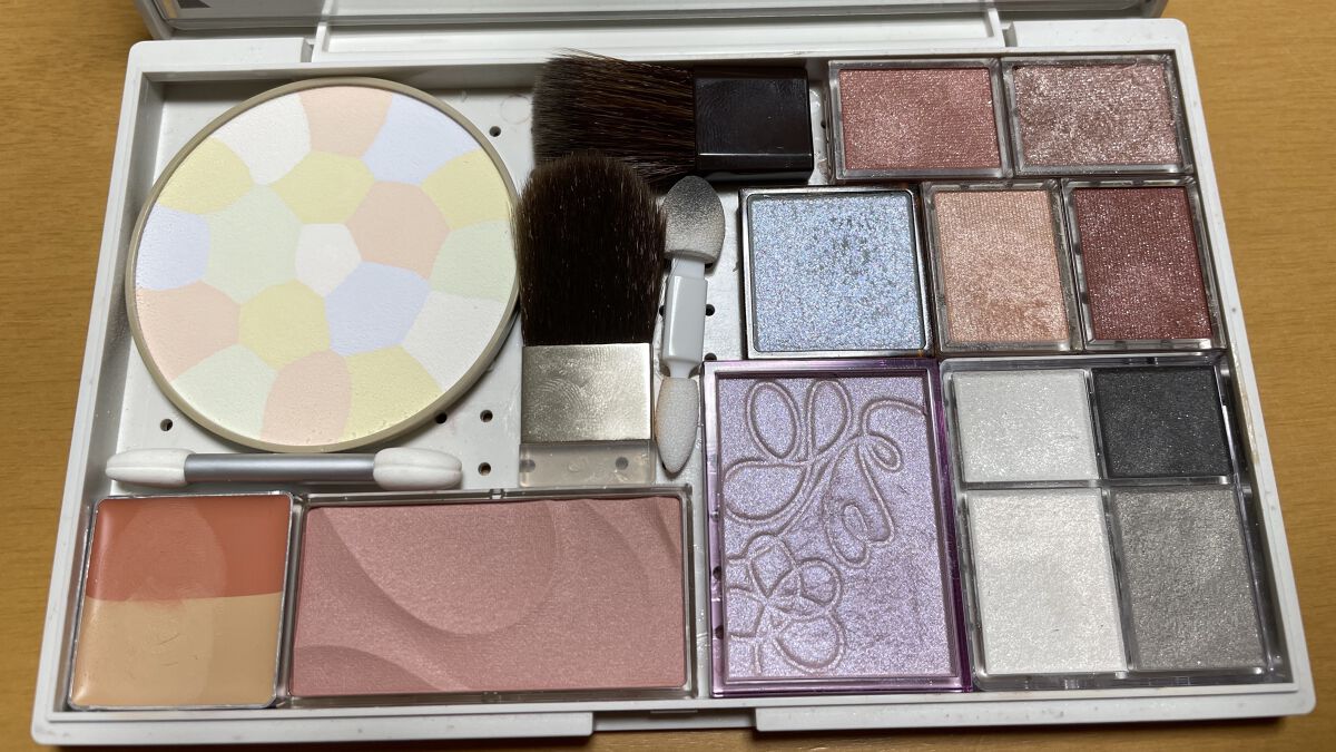 妊娠中体調が優れず化粧する余裕がなく、コロナ対策で外出もしなかったので、産後、古くなった化粧品を断捨離してとりあえずプチプラをいくつか購入、パレット作ってみた。 ばらばらしているのを探すのが面倒だったのが、ケースを開く系の化粧品はこれだけで済むのでだいぶ楽になった。 アイブロウはペンシルを使うので私は入れてないけれど、アイシャドウやハイライトを減らしてアイブロウパウダーやシェーディングを追加したら、もっとこのパレットで完結してしまいそう。 無印のパレット内の突起部をペンチやカッターで取り除いて、貼り付けただけ。 いろんな会社の製品ごちゃ混ぜだけれど、各辺の長さが同じものが多いので、配置決めはパズルみたいに。チップやブラシは隙間に。 これだけ入るので、上記種類と数を目安に入れるものを用意してみて。 如何せんパレットが白いので使っていくと段々汚くなってくるけれど、消しゴムをかけると綺麗に
