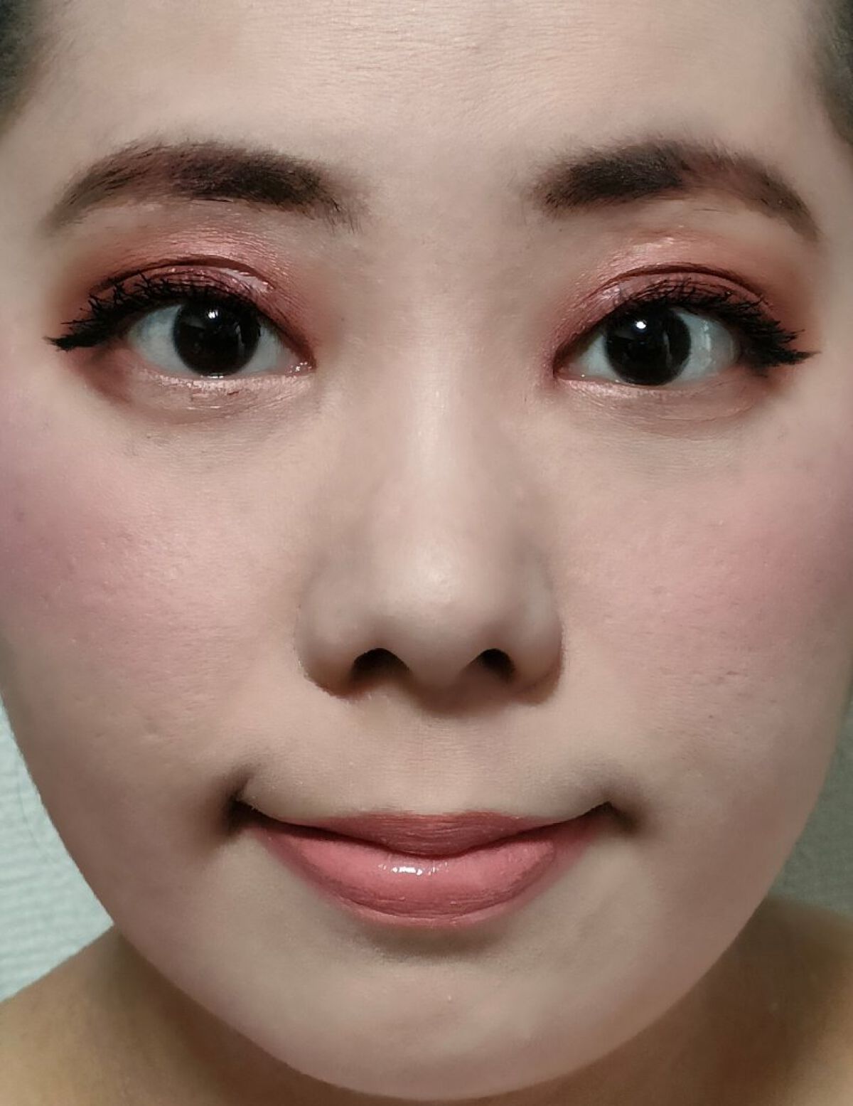 アイシャドウパレットは、UR GLAM アイシャドウパレットを、使用しました。 リップは、M・A・C リップスティック ピーチストックを、唇全体にまんべんなく塗ります。
