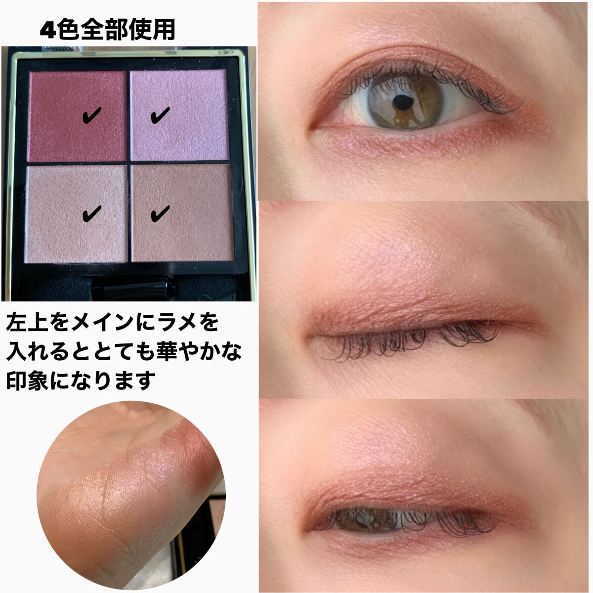 | 3つの異なる質感からなる4色パレットで、使い方によって雰囲気も質感も変わっていきます✨ | 詳細を見る |