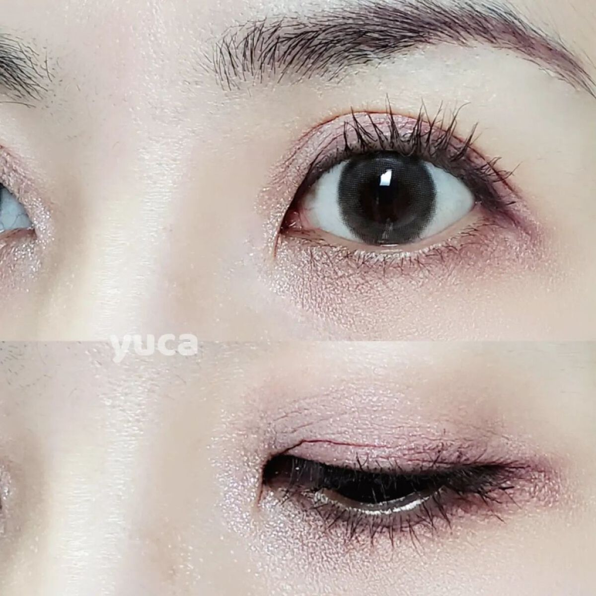 なんとなくだけど左側がブルベ寄り、右側がイエベ寄りの色味でニュートラルなパレットかなと思いました。 目元写真みると発色薄く見えるかなとおもいますが朝メイクして、直さず夜に撮ったのでこんな感じです。 カラコンはmimucoのブラウンフォンデュミムコのカラコンはどれも自然でかわいいです。