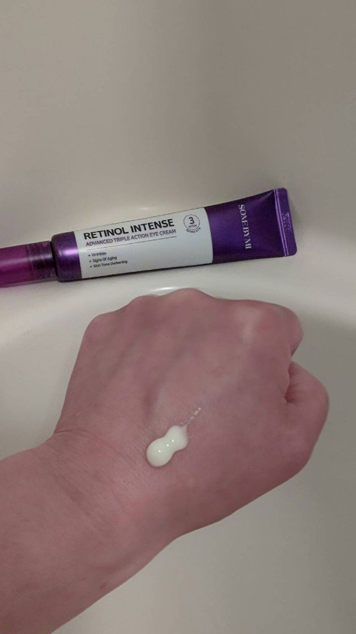 サムバイミーは、トラブル肌、敏感肌に注意を注いでいるスキンケアブランド☝️ そんなサムバイミーが作った、レチノール入りのアイクリームって👀⤴️⤴️ レチノール0.1%+グルタチオン配合で、レチノール入りなのに初心者でも使いやすい😆 クリーム色の、滑らかなクリーム状テクスチャー😌 チューブの先が細く、少量も出しやすいし目元ケアしやすい⤴️
