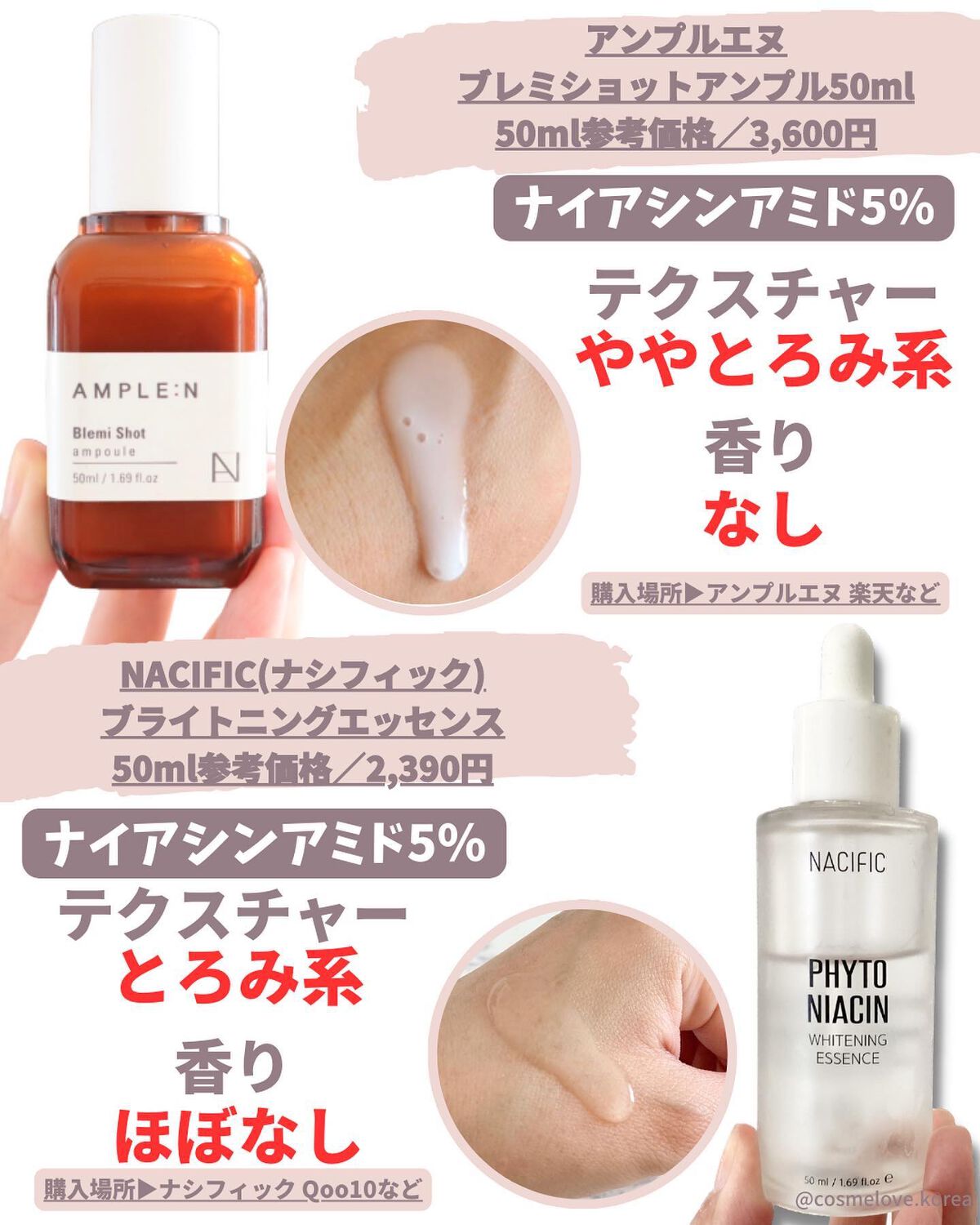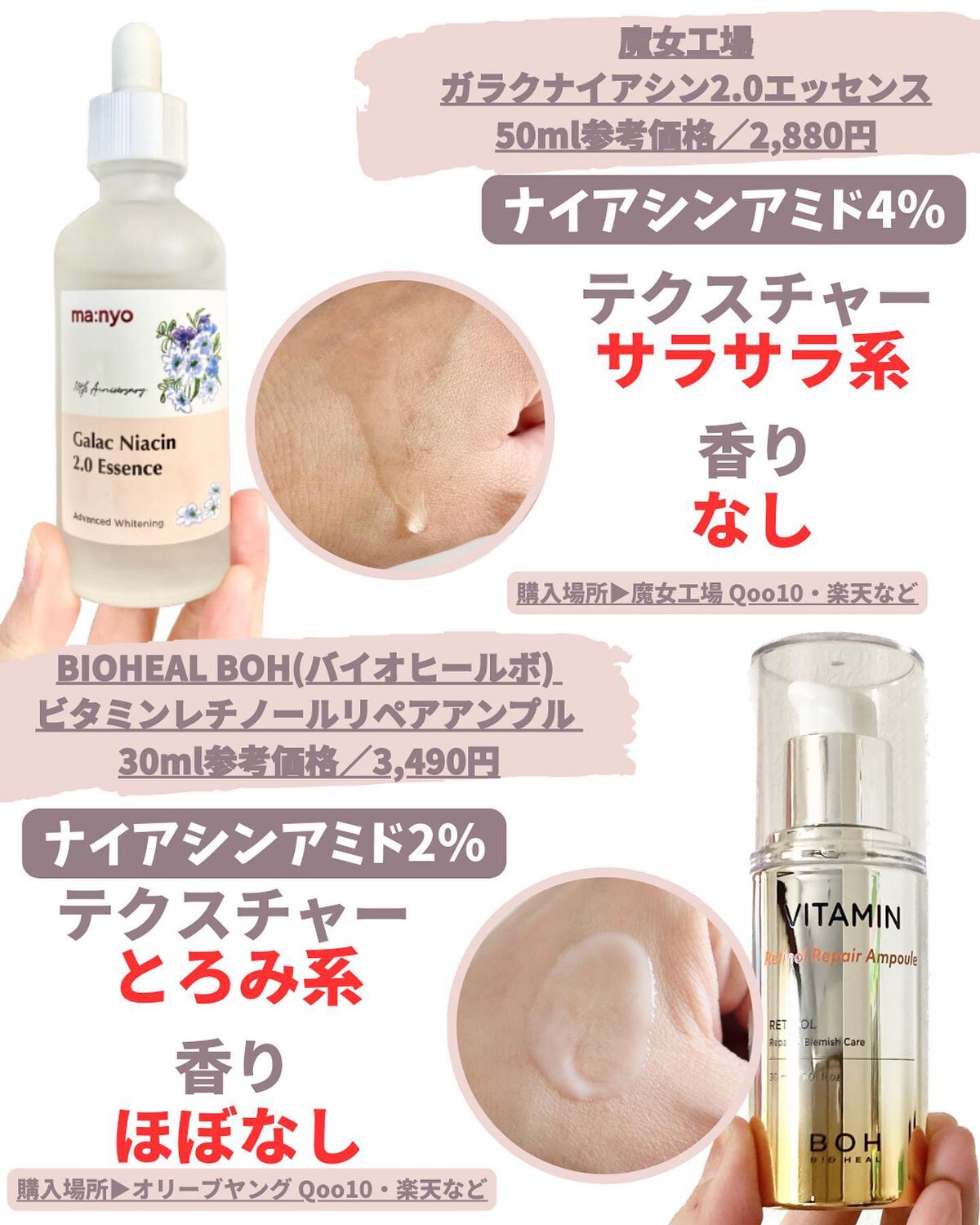 毛穴、シミ・そばかすが気になるから絶対使い続けたいナイアシンアミドが高配合なのに惹かれて買ってみた。 無香料。とろりとしたテクスチャで、みずみずしく肌に馴染む。刺激を感じず、他のセラムと組み合わせても塗り重ねやすい。 今のところ、特に刺激もなく、気持ちよく使えている。