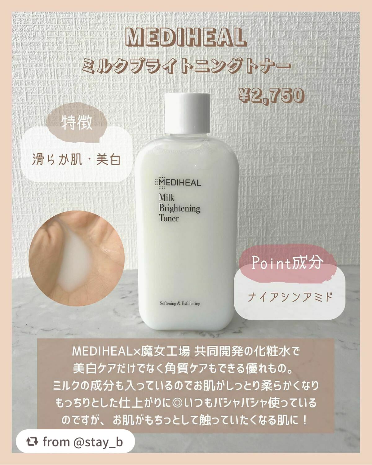 MEDIHEAL ミルクブライトニングトナー | 2,750円 |