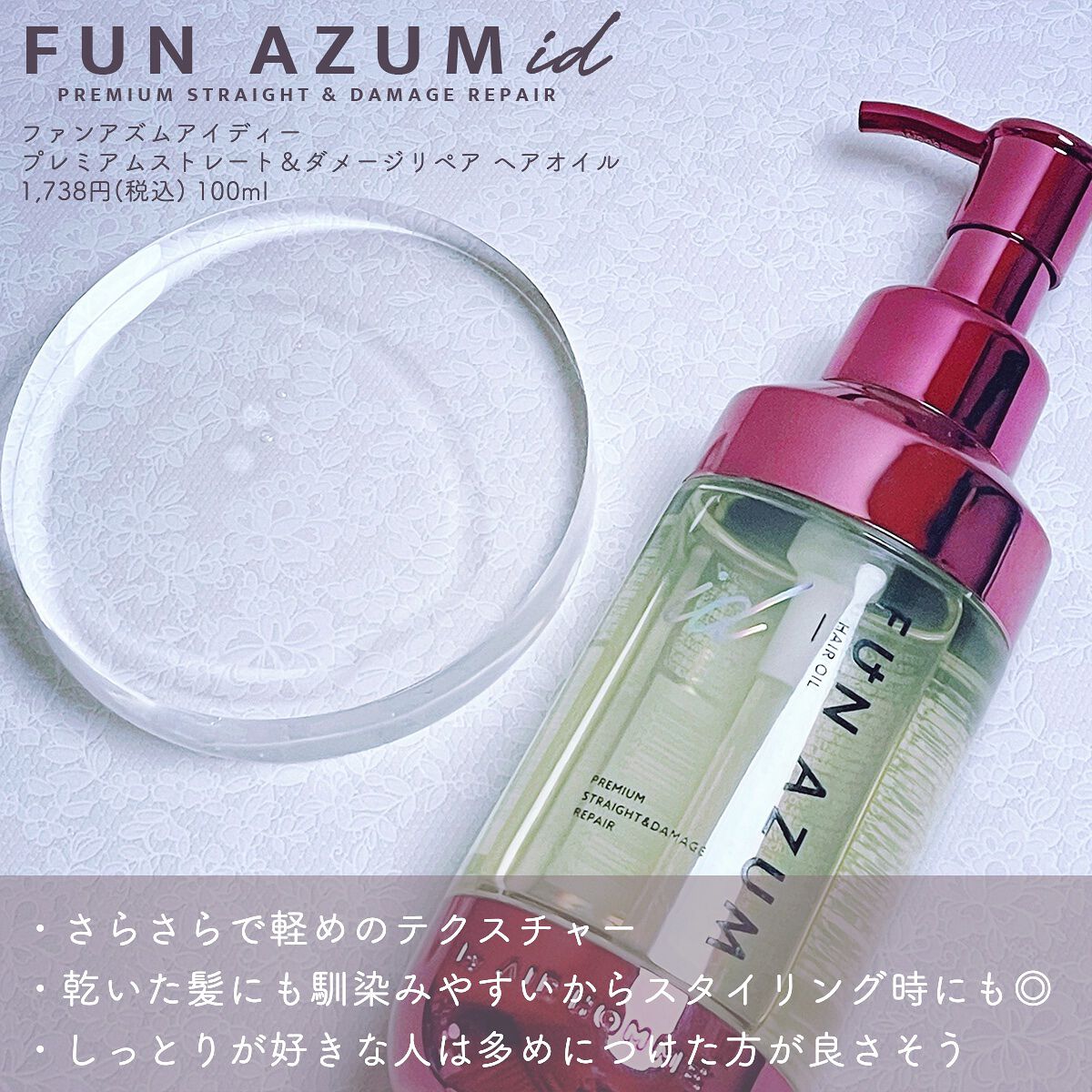 FUN AZUM ストレート&ダメージリペア ヘアオイル | 1,595円 |