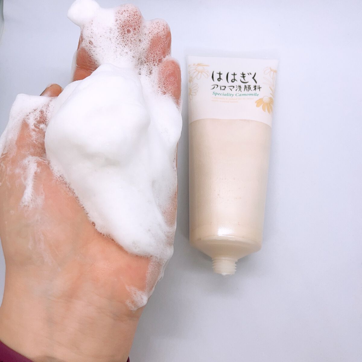 フカフカの泡立ちで、曇った気持ちや毛穴の奥までつるんと洗い流します。 った後は、つっぱらないモチモチの肌に。疲れてくたくたの日も洗顔が楽しみになりそう。 泡立てる前は香りはほぼしないですが、泡立てるとアロマ&ハーブの香りがふわっと香ります🌿 泡立てネット使用です弾力のある濃密泡に、たっぷりの泡で肌への負担が少なく洗うことができます。洗い上がりはつっぱり感のないさっぱりとした仕上がり!!