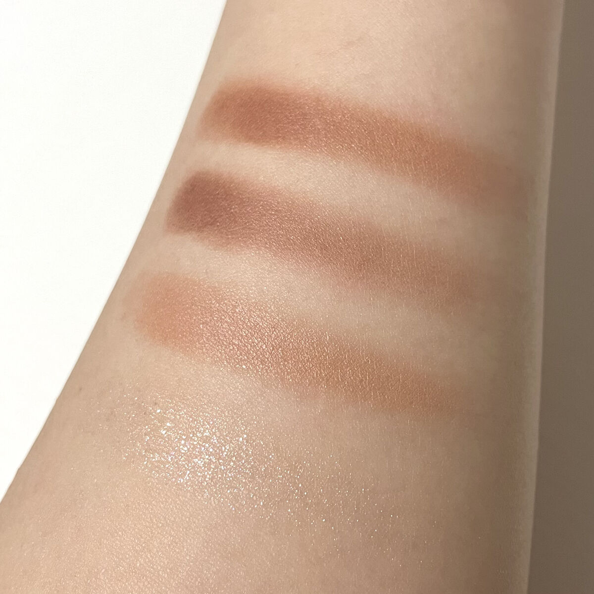 濃いいカラーに見えるけど、シアーで肌に馴染む! かわいい〜〜〜〜〜😍😍 ハイライト部分がラメはいっていて、そこだけハイライト代わりに使うも良し、そこでチークの縁をぼかすのも良し👌🏻 そのままブラシでスっととって、ふわっと頬にのせるだけでチーク完成🙆🏻♀️ わたしはミューテッドサマーと診断されたのですが、くすみと特に暗い色が得意!とのことでした。(2ndはディープウィンター) ドンピシャのカラー🥹🥹