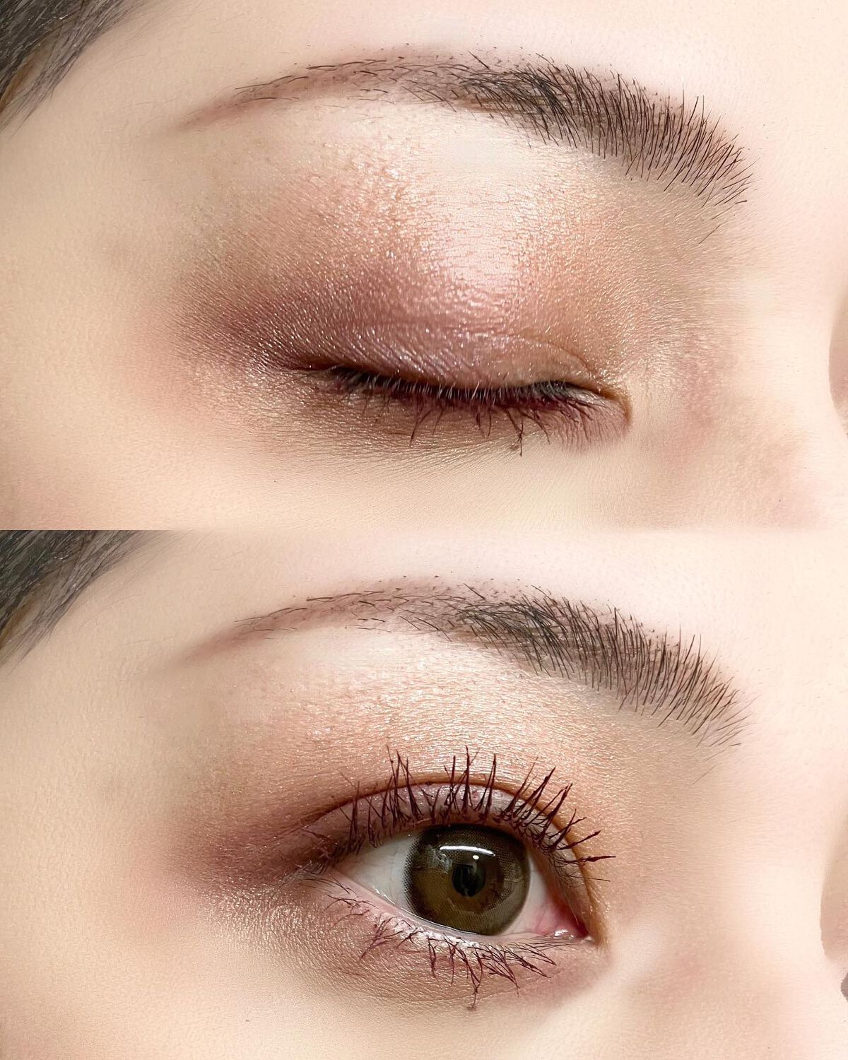 粒子の細かい、ふわっと軽い質感だけど、しっかり密着してくれます。 ぼかしやすく、カラー構成ももグラデーションしやすくなってるから、 ぼかすのが苦手な方には良さそう🎶 ほのかなパール、マットの組み合わせでナチュラルなグラデーションアイの出来上がり🥰