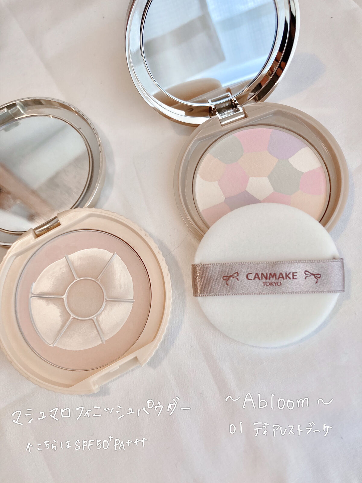 マシュマロフィニッシュパウダーの方がすごく好きで、もう何回リピしたかわからないぐらいで。 パッケージもボロボロになってきたので今回は初めてAbloomの方を購入。 使ってみた感想はマシュマロフィニッシュパウダーの良さはそのままでよりトーンアップする!とゆう感じ。 パケは、旧パケより今の方が好き❤️ 洗顔料で落とせるし美容成分配合なのは嬉しい😊 軽いメイクの日は日焼け止めにこれだけで出かけられる♡ 廃盤になったら困る、私にとって生涯コスメです^_^