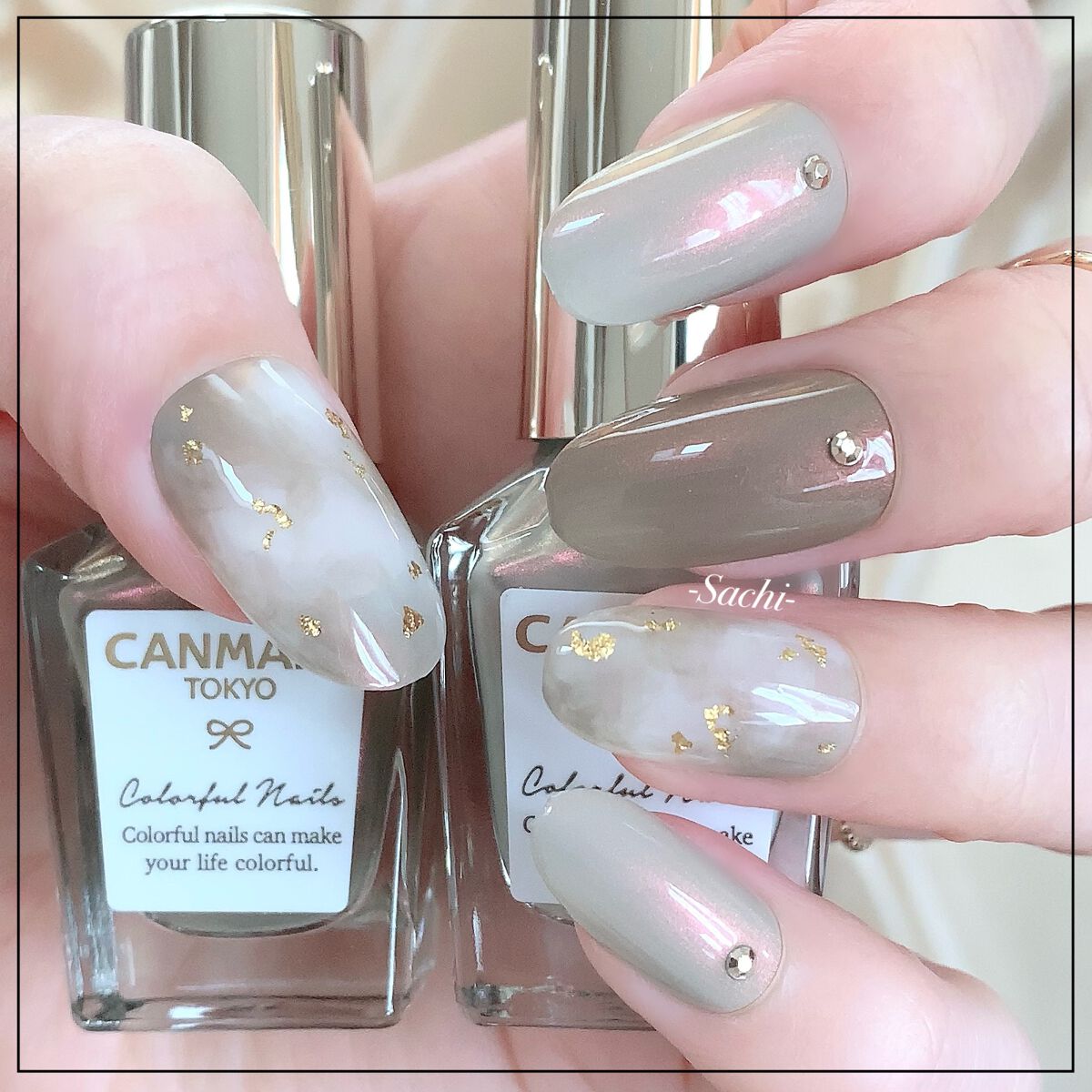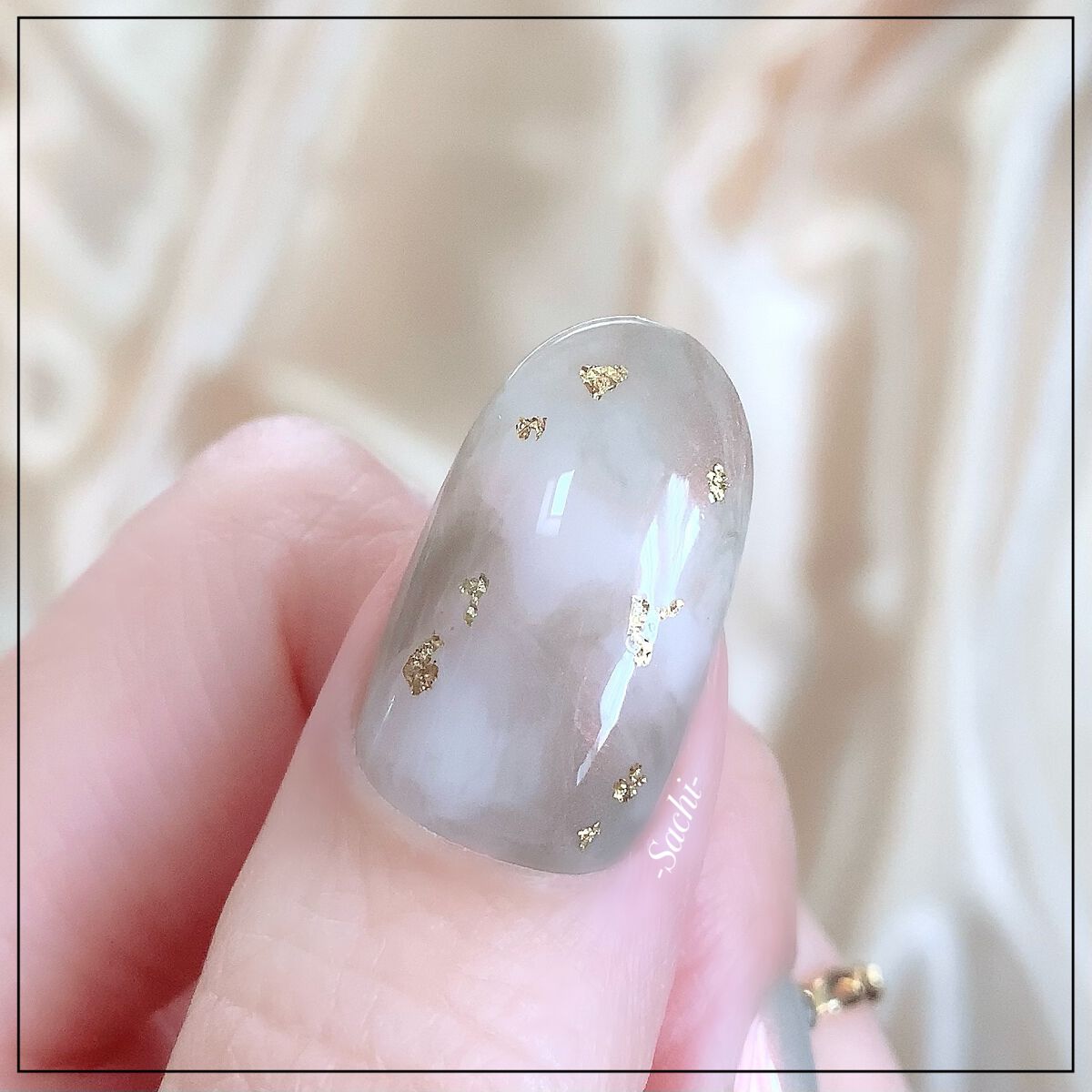 ワンカラーでも指ごとに色を変えるだけでオシャレに見えます💕 画像のようにゴールドラインとストーンを少し足すだけで華やかさがアップ🥰 何度かご紹介したことのあるスポンジで作るグラデーションです✨ スポンジを使うことで境目が綺麗に馴染んでくれます💕 アルミホイルの上でブラウンとトップコートを1:1くらいで混ぜたものを、トップコートのハケに取って3箇所に塗るだけ👌 事前に混ぜたものを塗ることで、爪の上でぼかすより簡単に出来ます💕 ベースカラーが乾く前に点置きしてぼかすことで綺麗にぼかせます✨ スピードが大事なので、使うポリッシュのキャップは全て開けておきましょう😊 天然石のラインはガタガタの方がより天然石っぽく見えるので、ラインを描くのが苦手な方でも大丈夫🙆♀️ 難しそうに見えて、やってみると意外と簡単に出来ます♡