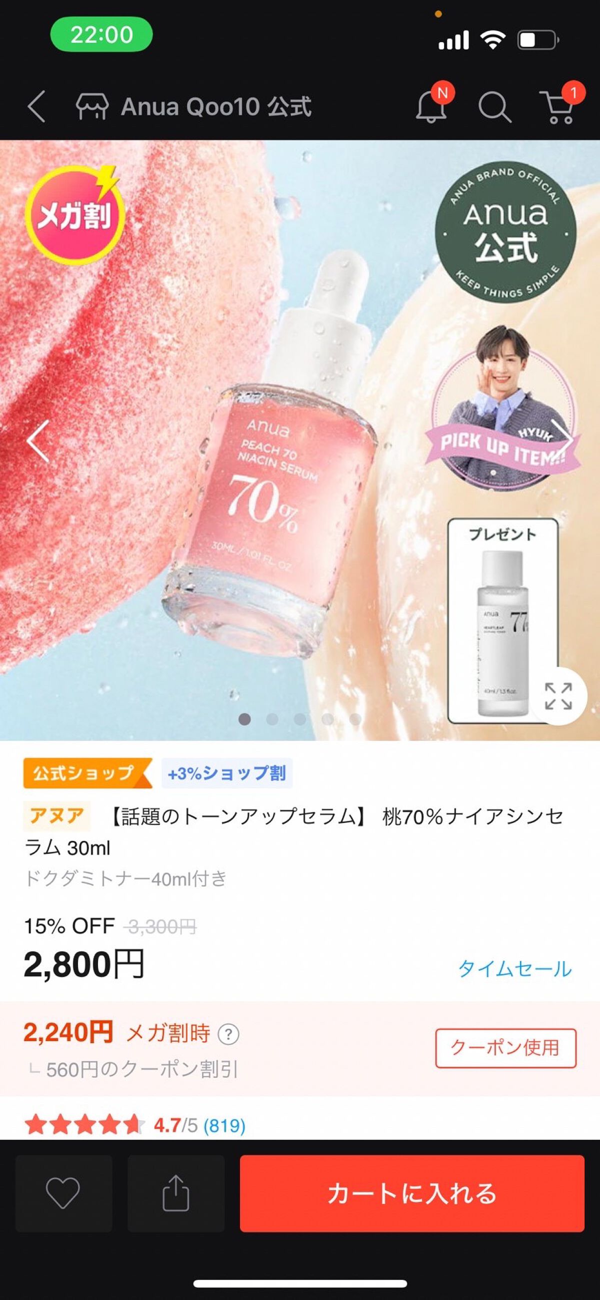 Anua 桃70%ナイアシンセラム | 2,579円 |