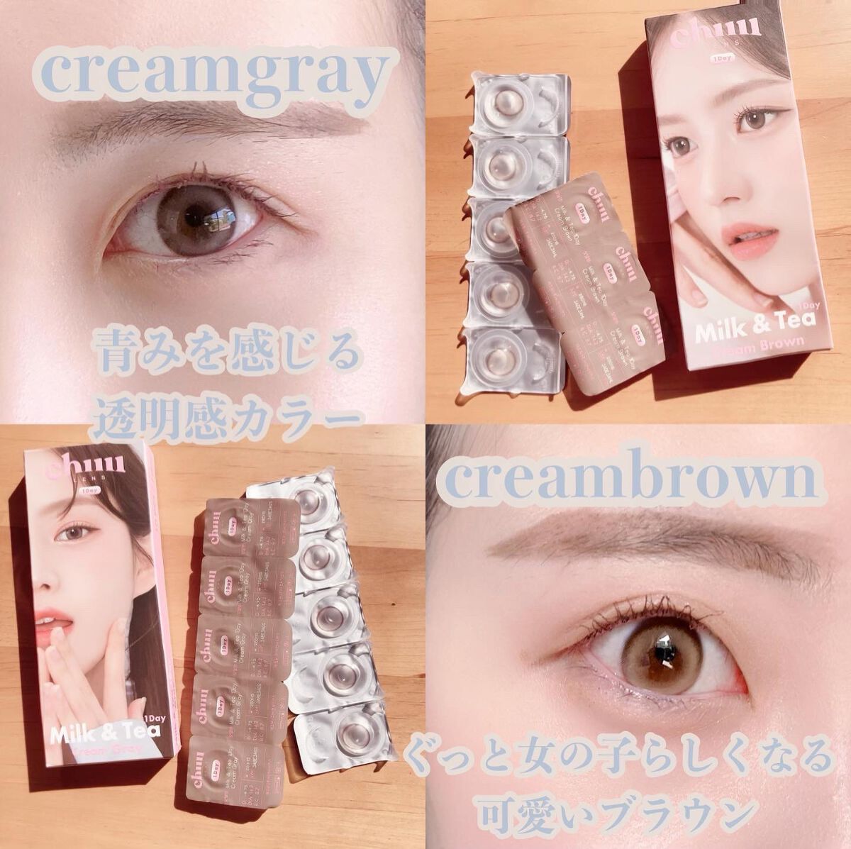 ふんわりカラーとほろ甘く馴染むぼかしフチでソフトな印象に #ミルクティー ≫ 𝗖𝗿𝗲𝗮𝗺 𝗕𝗿𝗼𝘄𝗻 ナチュラルでほんのりした瞳に ≫ 𝗖𝗿𝗲𝗮𝗺 𝗚𝗿𝗮𝘆 明るめカラーが透明感のある瞳に