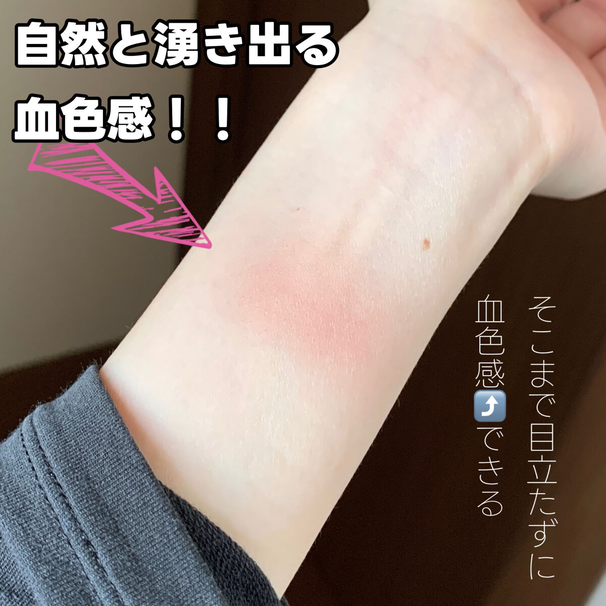 自然に血色感プラスしてくれて、ラメ入りだから毛穴を少しぼかしてくれる印象 どんな肌色でも使いやすいカラー、薄づきだから失敗しずらいよ! 迷ったらこっち買って欲しい!