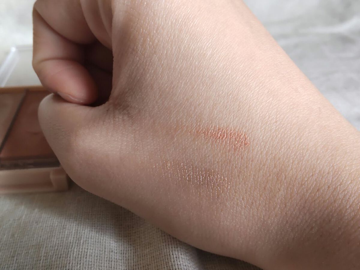 触るとぷにっとしていて、塗るとサラッと質感に変化💡 本当に660円とは思えない濡れツヤ感。 かなりパール感が強めなので塗りすぎには注意です⚠️ 黄みやオレンジ系のブラウンのアイシャドウや、イエベ春っぽいメイクと相性抜群