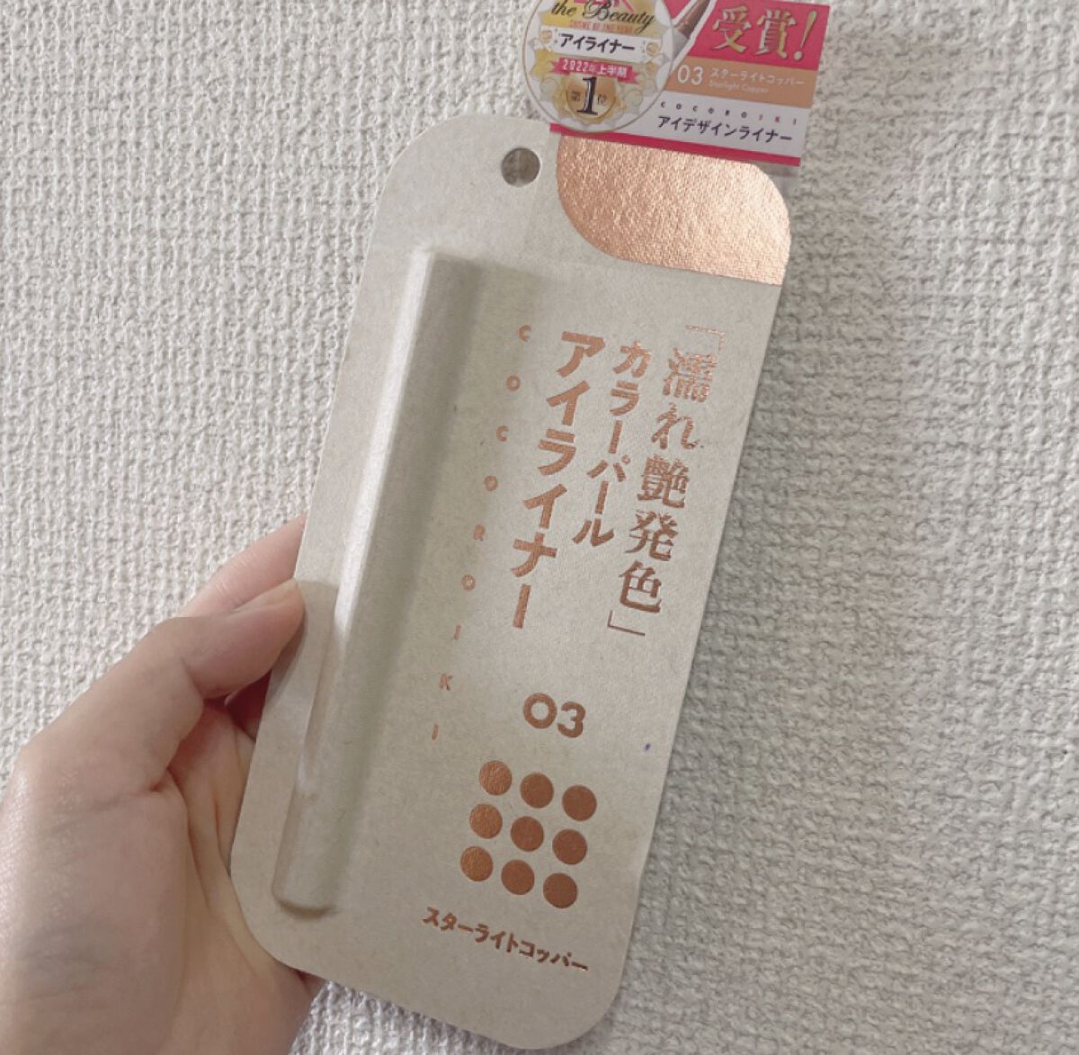 このお色一番人気のお色らしいです✨スターライトコッパー目力を優しく引き立てるコッパー光に当たると柔らかく煌めく。瞳の色を明るく見せてくれるピュアカラー水・汗・皮脂に強いウォータープルーフパールが均等に描ける柔らか&コシ有り筆色艶感じるパールの...