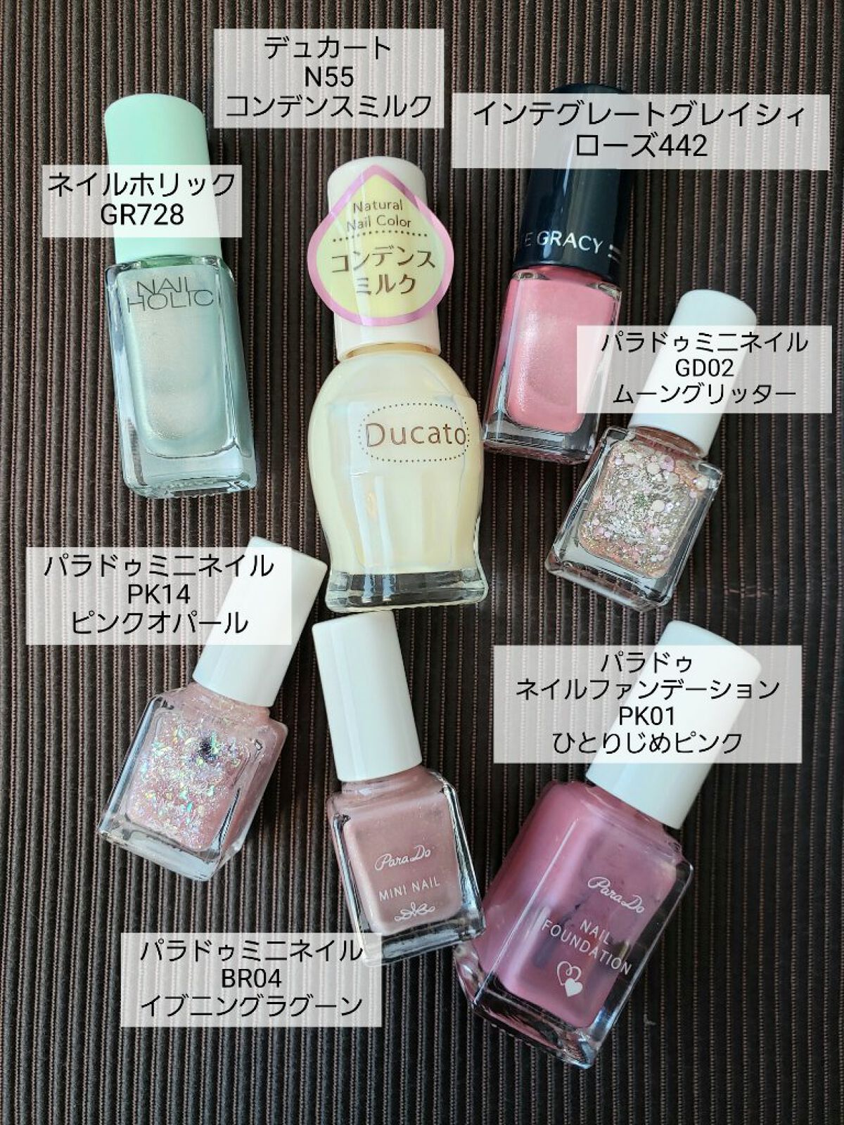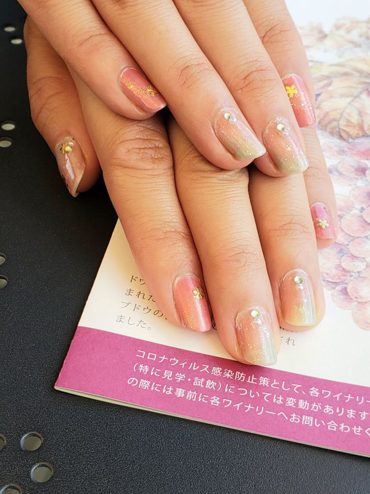GWのネイル記録。 5月1日は春色ニュアンスネイル。 思っていたよりも桜餅な仕上がりで、やるタイミングが1ヶ月遅かったなって思った(笑) ✼••┈┈••✼••┈┈••✼••┈┈••✼••┈┈••✼ 【使ったもの】 デュカート N55 コンデンスミルク パラドゥミニネイル PK14 ピンクオパール パラドゥミニネイル BR04 イブニングラグーン パラドゥミニネイル GD02 ムーングリッター パラドゥネイルファンデーション PK01 ひとりじめピンク ネイルホリック GR728 インテグレートグレイシィ ローズ442 paプラス ピールオフベースコート plus05 ネイリスト クイッククリスタルコートⅡ ネイルシール(wattsにて購入) パール、ストーン(SHEINにて購入) 細筆(ダイソーにて購入) 【やり方】 ⭐️ニュアンスネイル 1.デュカートN55コンデンスミルクを2度塗り 2.パラドゥミニネイルPK14ピンクオパールをたっぷりめに1度塗り 3.ネイルホリックGR728を角から3分の1くらいの範囲に塗って、境目をぼかす 4.③の反対側の角にパラドゥミニネイルBR04イブニングラグーンを塗って、境目をぼかす(真ん中はあける) 5.イブニングラグーンの上から、GR728の境目のあたりまでパラドゥネイルファンデーションPK01ひとりじめピンクを塗る 6.クイッククリスタルコートⅡを塗る 7.シールとパーツを貼る 8.トップコートで仕上げ 🔹ポイント ・ピンクなのに青ラメ入りのイブニングラグーンと、グリーンなのにピンクラメ入りのGR728が対照的でかわいい ・境目をぼかすのはそれぞれのポリッシュのハケでOK ・ストーンとパールの周りは細筆でトップコートを塗る ⭐️差し色ピンクネイル 1.インテグレートグレイシィ ローズ442を2度塗り 2.クイッククリスタルコートⅡを1度塗り 3.シールを貼る 4.パラドゥミニネイルGD02ムーングリッターを斜めに塗る 5.トップコートで仕上げ 🔹ポイント ムーングリッターはS字を書くように、少し蛇行させてみた ✼••┈┈••✼••┈┈••✼••┈┈••✼••┈┈••✼ この日、山梨県は甲州市勝沼にて、友人とワイナリー巡りをしてきた! アラサー女2人で酔いどれ旅、最高。 そして有料試飲とかいう、気兼ねなく飲める素晴らしいシステム…。 飲み比べてみたら、同じブドウでもワイナリーさんや年によって、出来上がりが全然違うのがよくわかって感動! こんなに差が出るものなの?ってくらい。 自分の舌を信用してなかったけど、違いが感じられると楽しいものだねぇ。 お土産用に数本買ってきたから、夫と飲むのが楽しみだなぁ! きっとおいしくてびっくりするぞ😁 塗ってから気が付いたんだけど、今回のネイルは『鬼滅の刃』の甘露寺蜜璃というキャラクターの概念ネイルっぽいw 具体的にはピンクとグリーンのグラデーションなところと、淡いグリーンのストーンを使ったあたり。 ふんわり可愛らしいネイルに仕上がって、今回も満足! GWだし、次はギラギラなネイルにしちゃおうかなー。 遊びの予定もネイルの予定もわくわくする🎵 #セルフネイル #ネイル記録