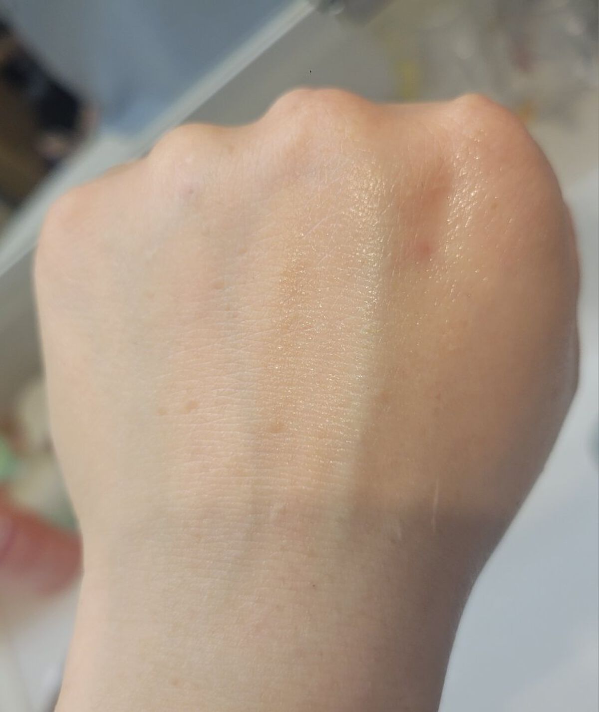 手に塗って数秒してからガッシリティッシュで拭いてみたのにこんな残ってる!!! (ティントだからね) とてもかわいい色なので ブルベ夏&イエベ春の方超おすすめです!!!!!