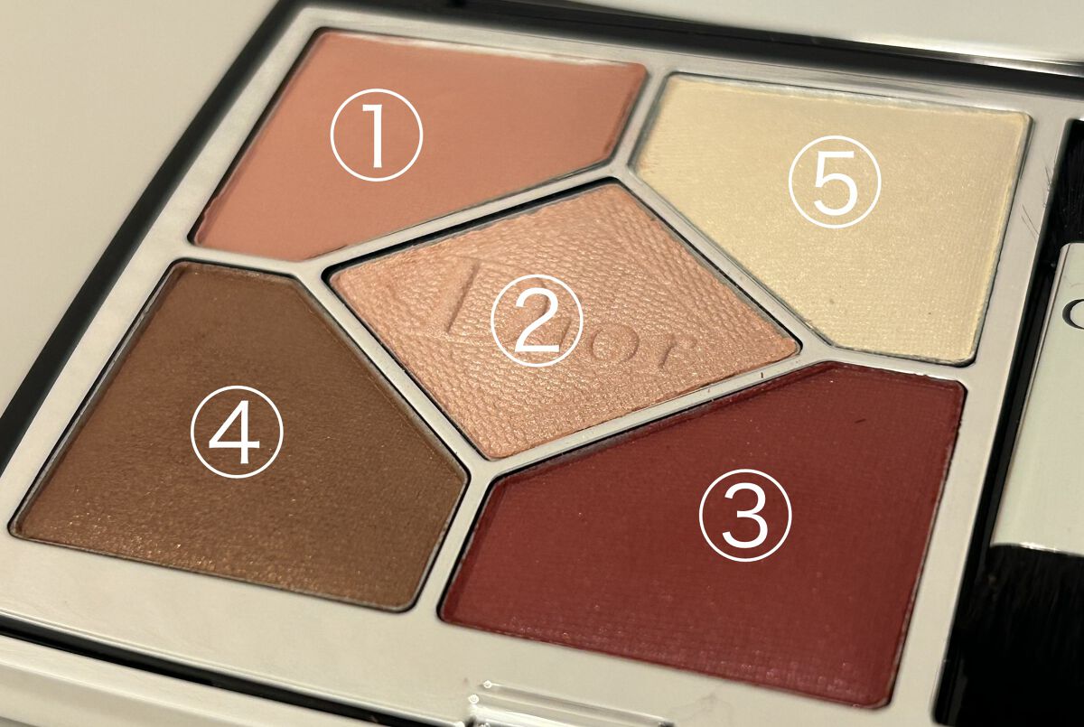 Diorサンククルールクチュール349プレタポルテ今日はこれ✨🐤真ん中のベージュ→アイホール全体に🐤右下の赤みブラウン→二重幅と、下瞼の目尻側に🐤左下のコッパー→下瞼にいつも思うけど、特に赤みブラウンがやっぱり可愛い😍...