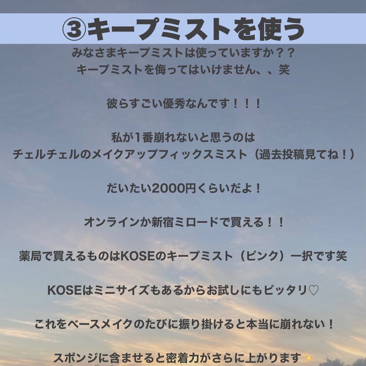 | フィックスミストランキング第1位 | ベースの崩れが皮脂より乾燥からくる人に特にオススメ✨ サラッとというより、しっとりツヤ肌感 | 詳細を見る | |