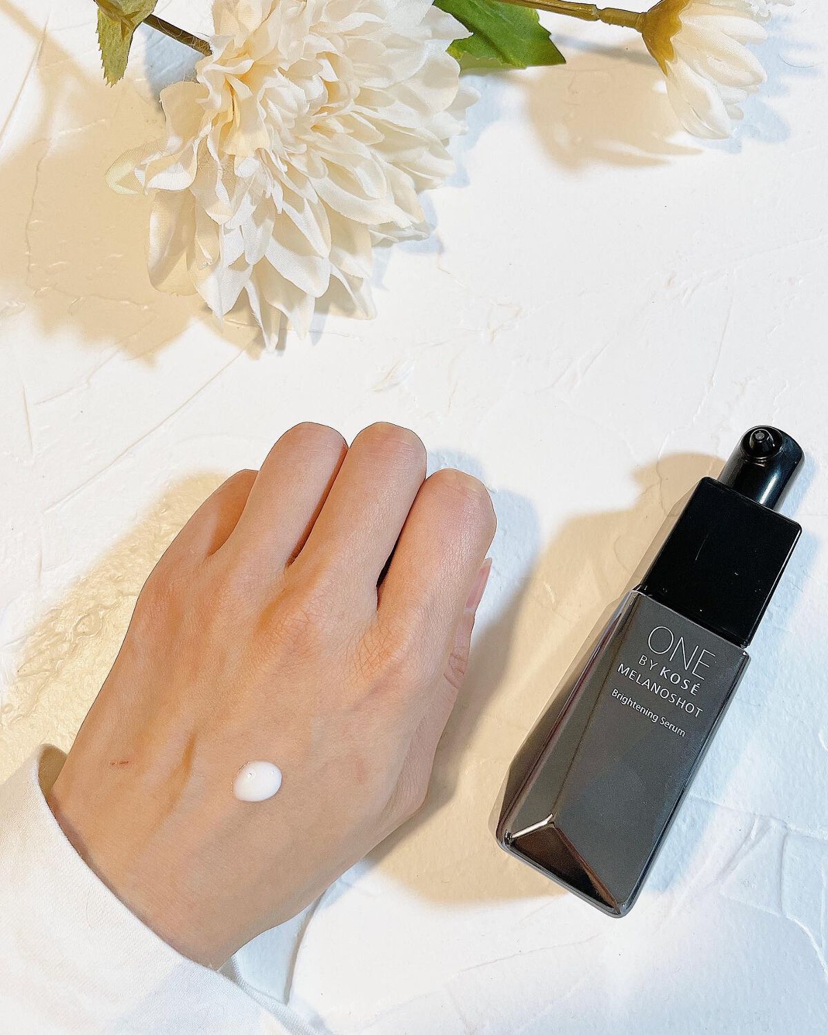 スポイトから出した瞬間は糸を引くほど とろ ~りした一滴だけど、スーッとお肌に馴染む😳 キャップを回すと 一回分の使用量が自動で吸い上がる容器になってて、 めちゃくちゃ便利だったー!! カサカサとしたお肌をなめらかに包んでくれ、 まるでうるおいの膜で守られるような感覚✨